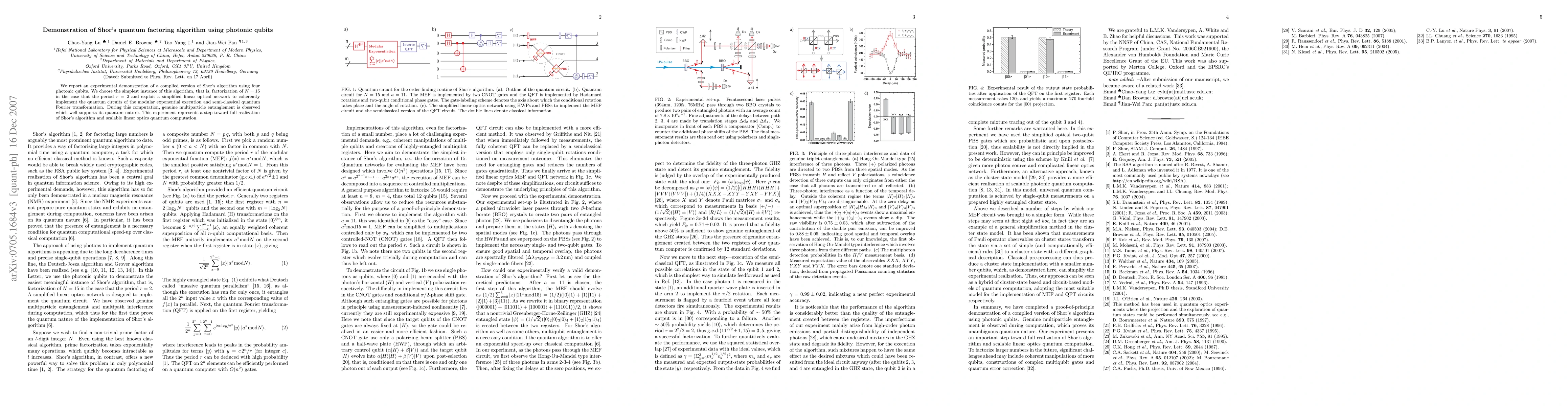 ImplementationofShor'salgorithmusingphotonicqubitswithgenuinemultiparticleentanglement