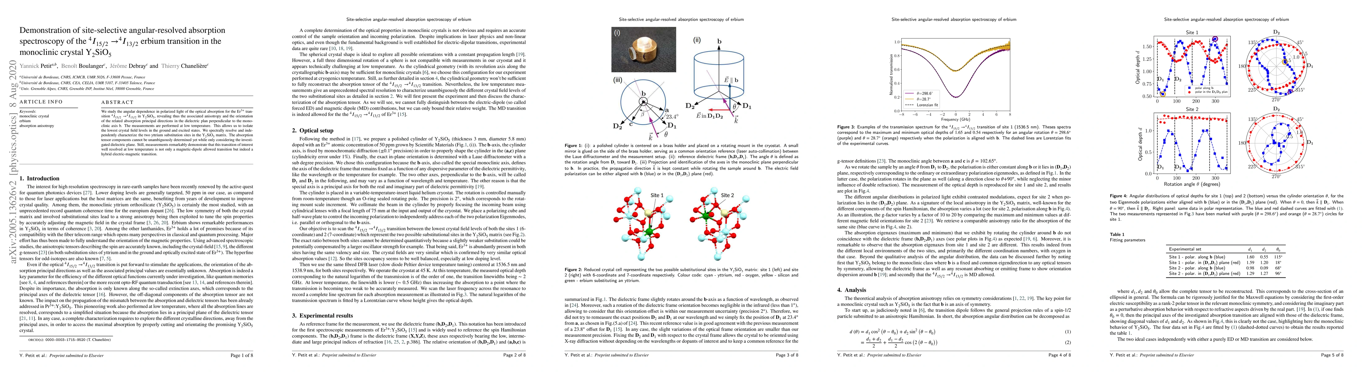 We study the angular dependence in polarized light of the optical absorption for the Er$^{3+}$ transition $^{4}I_{15/2} \rightarrow $$^{4}I_{13/2}$ in Y$_2$SiO$_5$, revealing thus the associated anisotropy and the orientation of the related absorption principal directions in the dielectric plan perpendicular to the monoclinic axis b. The measurements are performed at low temperature. This allows us to isolate the lowest crystal field levels in the ground and excited states. We spectrally resolve and independently characterize the two yttrium substitution sites in the Y$_2$SiO$_5$ matrix. The absorption tensor components cannot be unambiguously determined yet while only considering the investigated dielectric plane. Still, measurements remarkably demonstrate that this transition of interest well resolved at low temperature is not only a magnetic-dipole allowed transition but indeed a hybrid electric-magnetic transition.