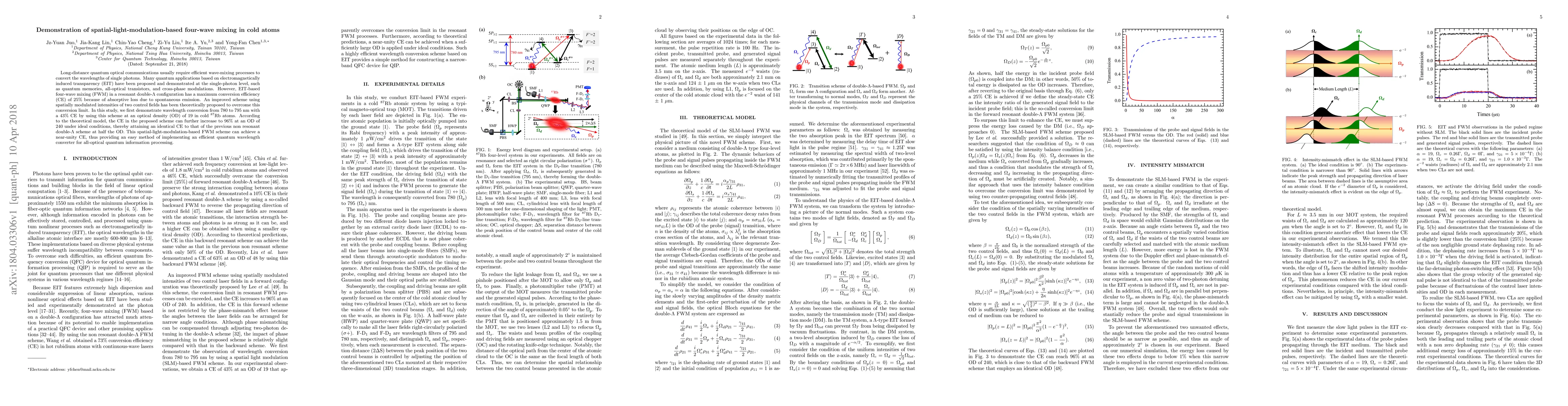 This study demonstrates a spatial-light-modulation-based four-wave mixing scheme in cold $^{87}$Rb atoms achieving a 43% conversion efficiency for wavelength conversion from 780 to 795 nm. The proposed method promises an efficiency up to 96% under ideal conditions, significantly improving on previous EIT-based schemes.