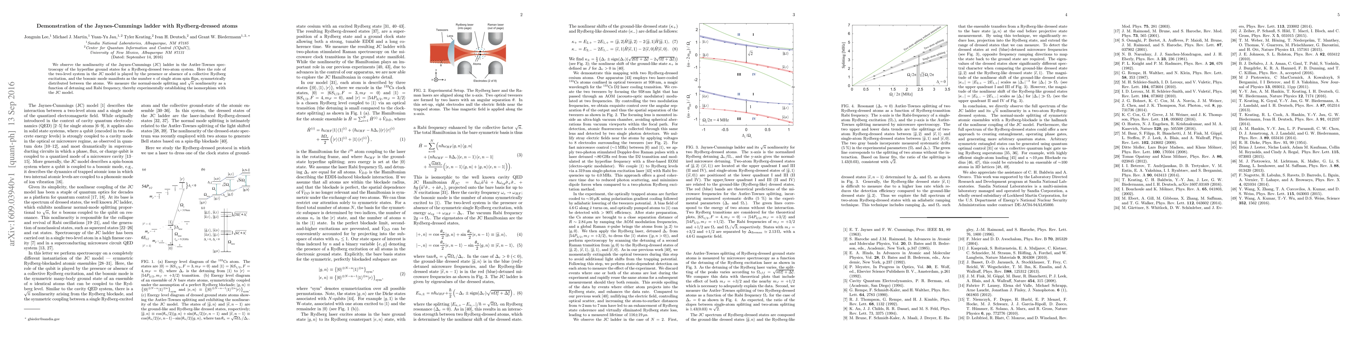 This paper demonstrates the nonlinearity of the Jaynes-Cummings ladder in a Rydberg-dressed two-atom system, showing normal-mode splitting and $\sqrt{n}$ nonlinearity in Autler-Townes spectroscopy, thus establishing an isomorphism with the JC model.