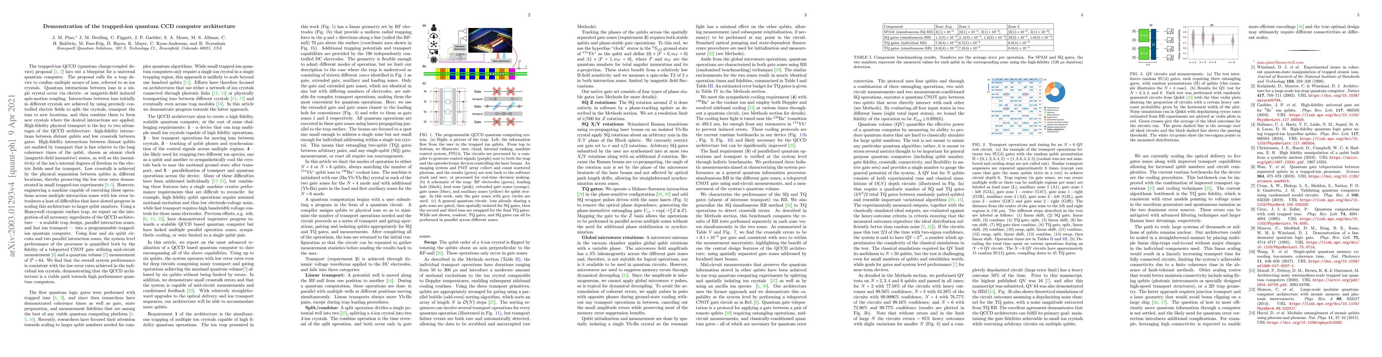 This paper proposes a trapped-ion quantum-CCD (QCCD) architecture for a universal quantum computer, demonstrating integration of its components into a programmable quantum processor. The architecture maintains low error rates by scaling with small ion crystals and uses ion transport for full-connectivity, showcasing high-performance potential for quantum error correction and quantum advantage.