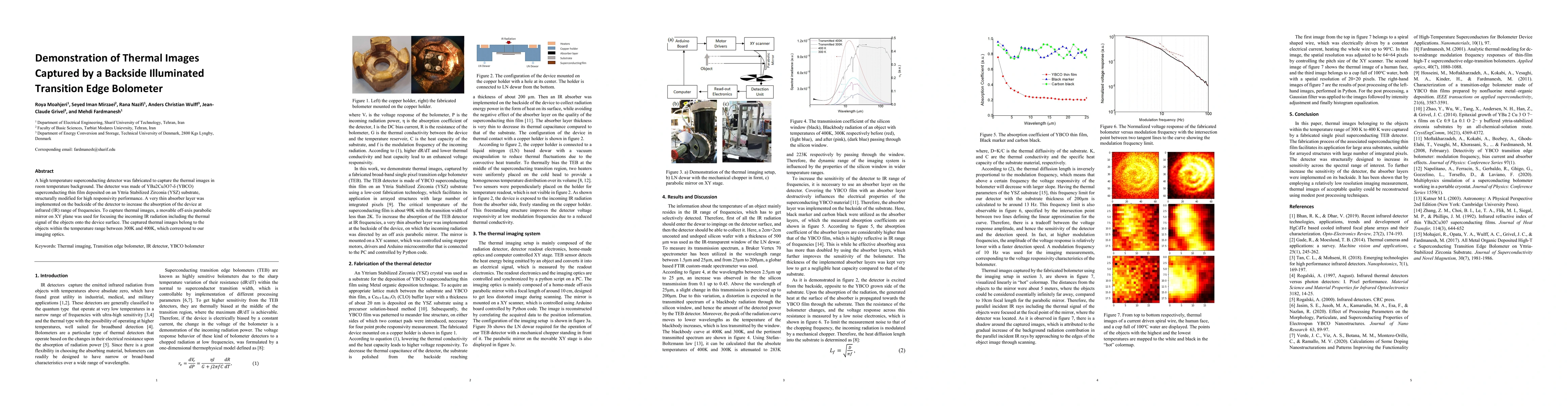 A high temperature superconducting detector was fabricated to capture the thermal images in room temperature background. The detector was made of YBa2Cu3O7-{\delta} (YBCO) superconducting thin film deposited on an Yttria Stabilized Zirconia (YSZ) substrate, structurally modified for high responsivity performance. A very thin absorber layer was implemented on the backside of the detector to increase the absorption of the device at infrared (IR) range of frequencies. To capture thermal images, a movable off-axis parabolic mirror on XY plane was used for focusing the incoming IR radiation including the thermal signal of the objects onto the device surface. The captured thermal images belong to the objects within the temperature range between 300K and 400K, which correspond to our imaging optics.