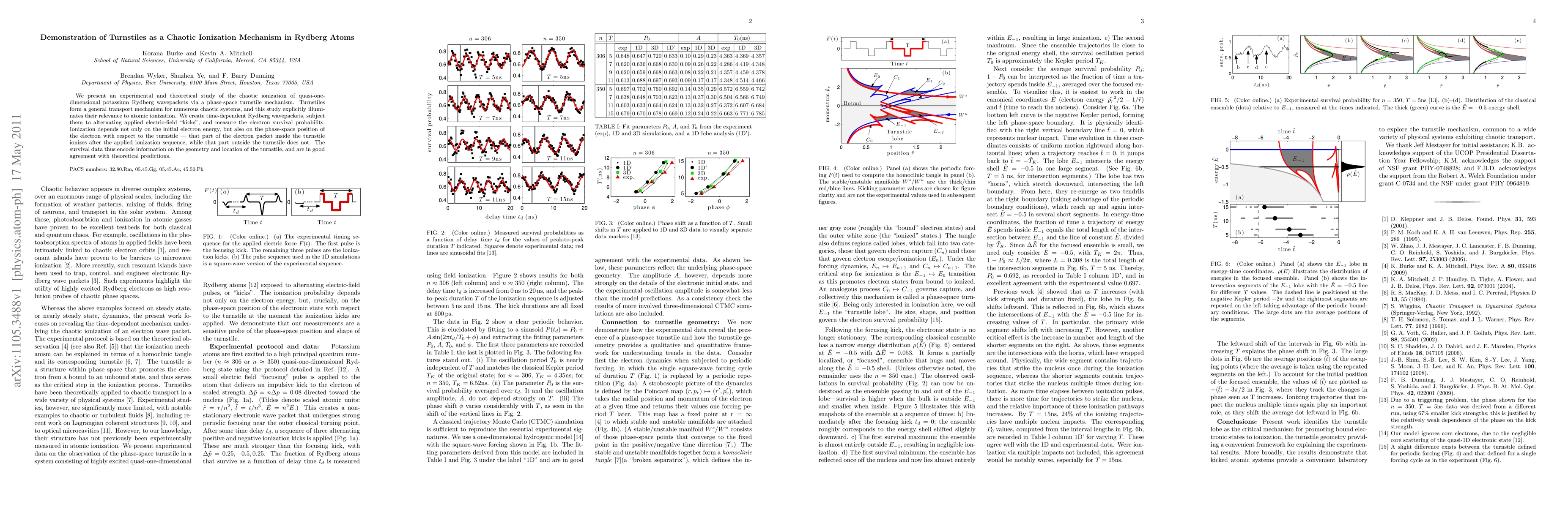 We present an experimental and theoretical study of the chaotic ionization of quasi-one-dimensional potassium Rydberg wavepackets via a phase-space turnstile mechanism. Turnstiles form a general transport mechanism for numerous chaotic systems, and this study explicitly illuminates their relevance to atomic ionization. We create time-dependent Rydberg wavepackets, subject them to alternating applied electric-field "kicks", and measure the electron survival probability. Ionization depends not only on the initial electron energy, but also on the phase-space position of the electron with respect to the turnstile --- that part of the electron packet inside the turnstile ionizes after the applied ionization sequence, while that part outside the turnstile does not. The survival data thus encode information on the geometry and location of the turnstile, and are in good agreement with theoretical predictions.