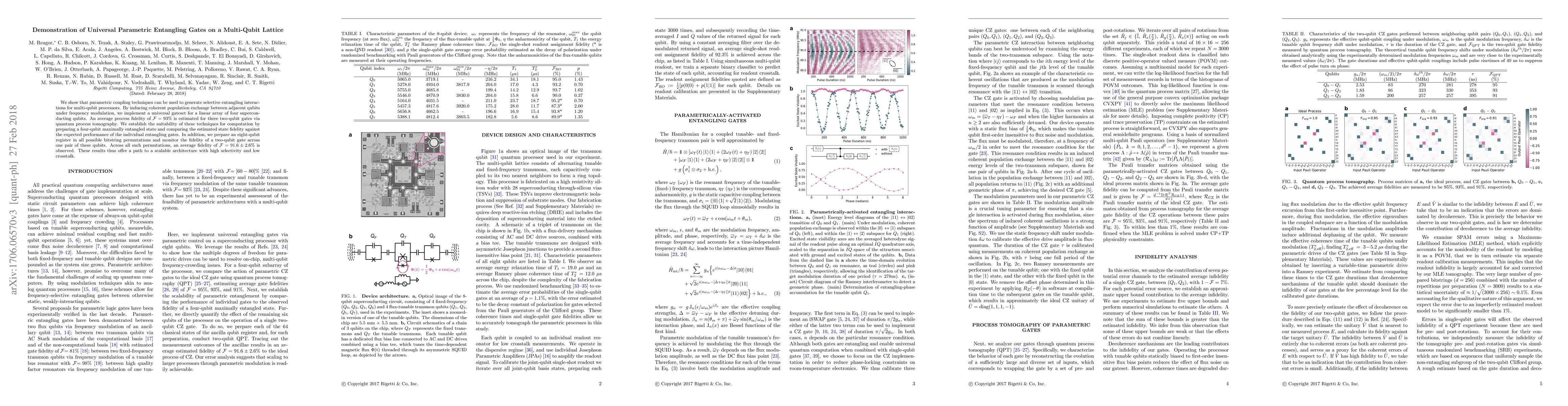 This paper demonstrates the use of parametric coupling to create selective entangling gates for a multi-qubit processor, achieving an average fidelity of 93% for three two-qubit gates. The technique is scalable, as shown by maintaining an average fidelity of 91.6% across eight-qubit permutations.