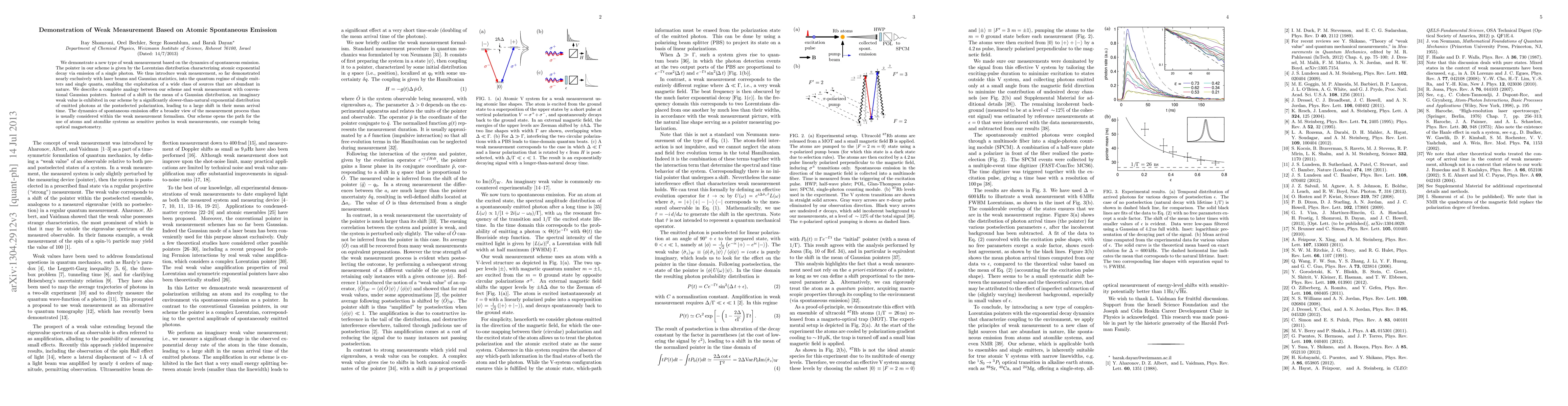 This research demonstrates a novel weak measurement method based on the dynamics of atomic spontaneous emission, introducing it into the quantum regime of single emitters and quanta. Unlike conventional Gaussian-based weak measurements, this method exhibits an imaginary weak value through a slower-than-natural exponential distribution of emitted photons, expanding the weak measurement framework and enabling new applications like optical magnetometry.