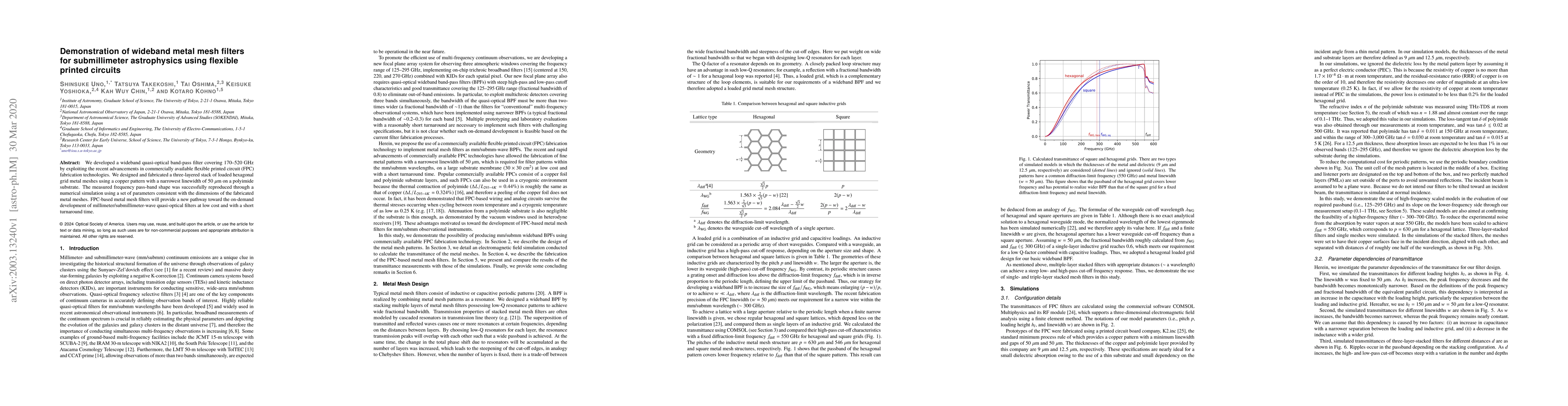 We developed a wideband quasi-optical band-pass filter covering 170-520 GHz by exploiting the recent advancements in commercially available flexible printed circuit (FPC) fabrication technologies. We designed and fabricated a three-layered stack of loaded hexagonal grid metal meshes using a copper pattern with a narrowest linewidth of $50~\mu\mathrm{m}$ on a polyimide substrate. The measured frequency pass-band shape was successfully reproduced through a numerical simulation using a set of parameters consistent with the dimensions of the fabricated metal meshes. FPC-based metal mesh filters will provide a new pathway toward the on-demand development of millimeter/submillimeter-wave quasi-optical filters at low cost and with a short turnaround time.