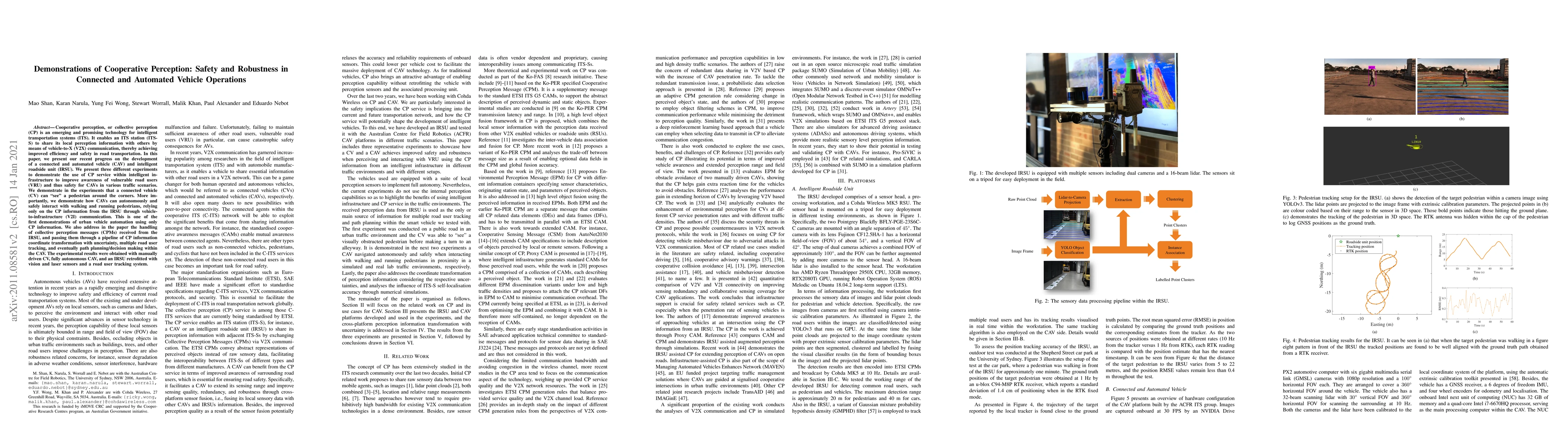 This paper demonstrates the use of cooperative perception (CP) to enhance safety and robustness in connected and automated vehicle (CAV) operations through vehicle-to-infrastructure (V2I) communication. Experiments show CAVs can safely interact with pedestrians using CP information, achieving improved awareness of vulnerable road users and demonstrating the potential of CP for urban vehicle automation.