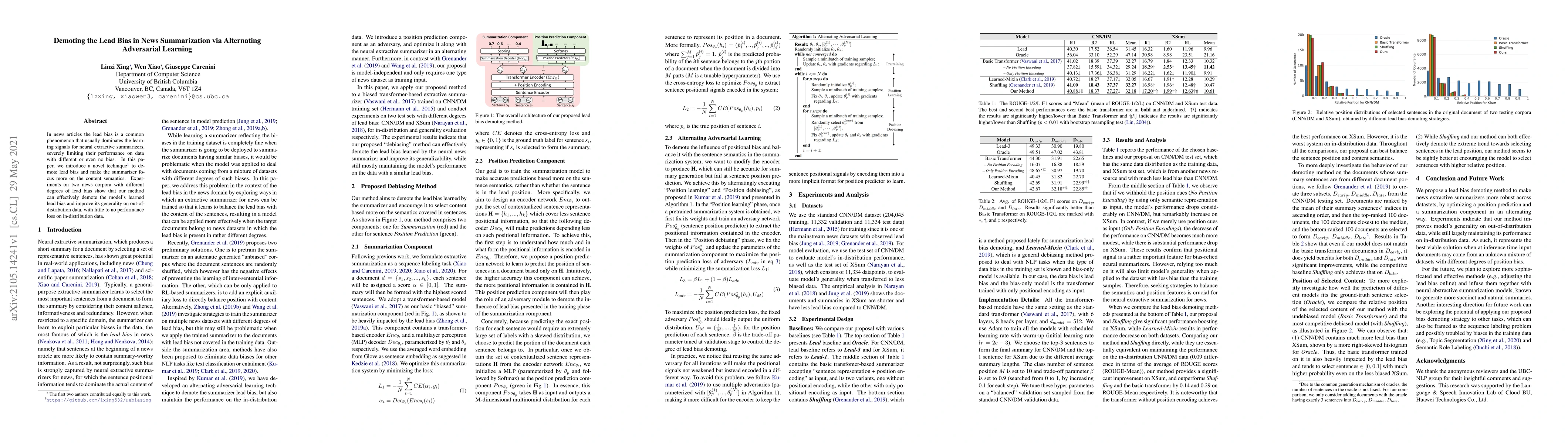 In news articles the lead bias is a common phenomenon that usually dominates the learning signals for neural extractive summarizers, severely limiting their performance on data with different or even no bias. In this paper, we introduce a novel technique to demote lead bias and make the summarizer focus more on the content semantics. Experiments on two news corpora with different degrees of lead bias show that our method can effectively demote the model's learned lead bias and improve its generality on out-of-distribution data, with little to no performance loss on in-distribution data.