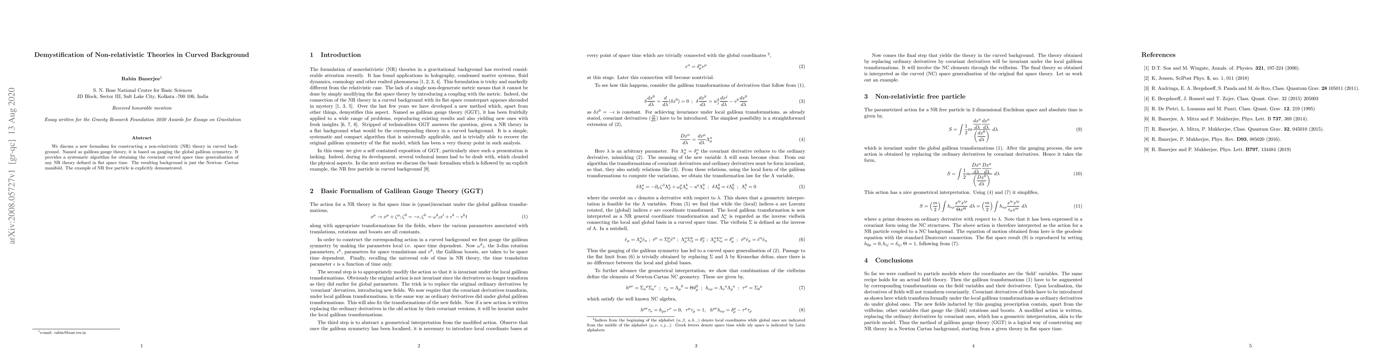 This paper introduces a new formalism called galilean gauge theory to construct non-relativistic theories in curved backgrounds, systematically generalizing flat space NR theories to Newton-Cartan manifolds, with an explicit example of a NR free particle.