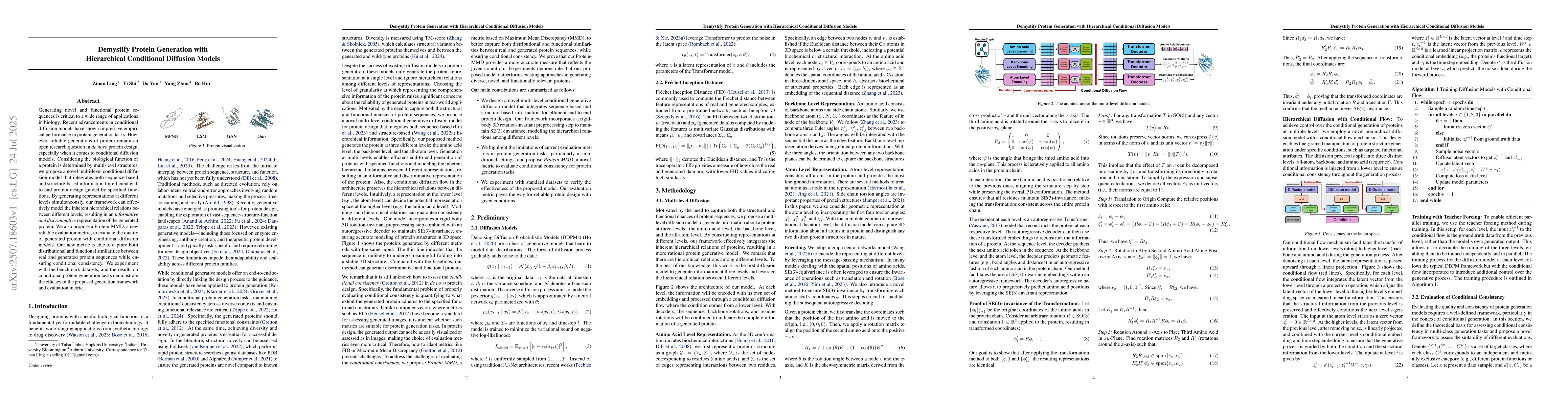 The paper presents a hierarchical conditional diffusion model that integrates sequence-based and structure-based information for efficient end-to-end protein design, along with a new evaluation metric, Protein-MMD, for assessing conditional consistency in protein generation tasks.