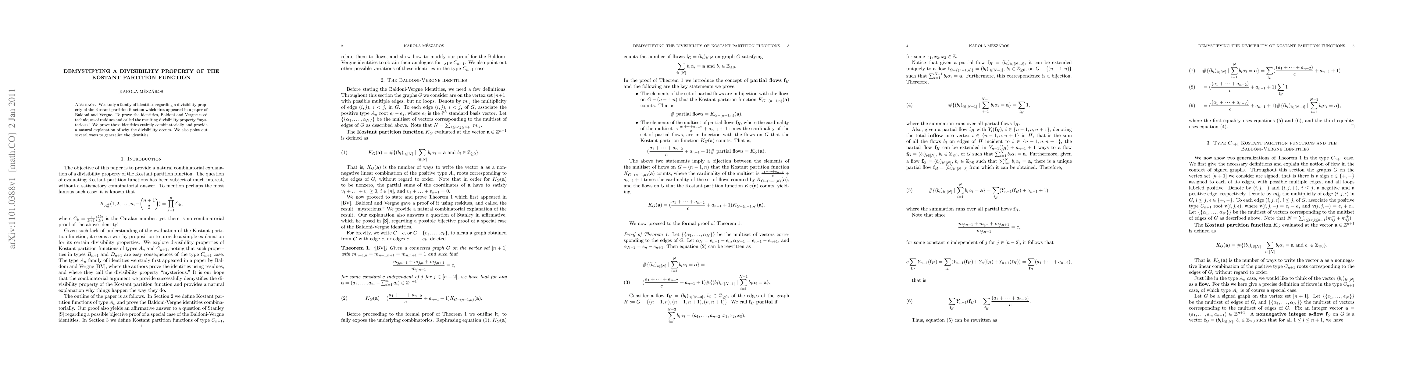 We study a family of identities regarding a divisibility property of the Kostant partition function which first appeared in a paper of Baldoni and Vergne. To prove the identities, Baldoni and Vergne used techniques of residues and called the resulting divisibility property "mysterious." We prove these identities entirely combinatorially and provide a natural explanation of why the divisibility occurs. We also point out several ways to generalize the identities.
