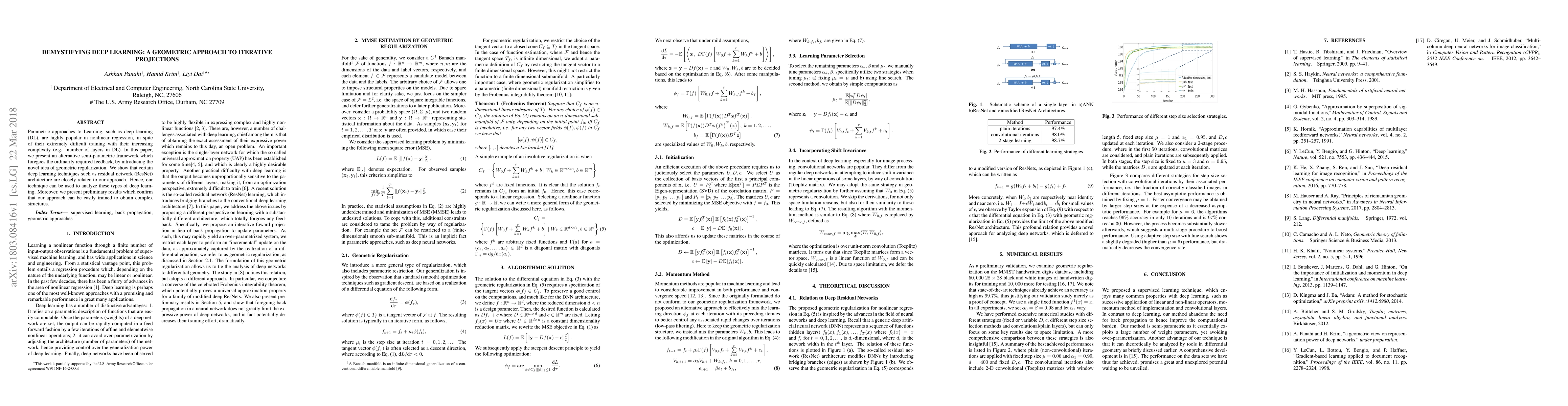 A new approach to deep learning using geometric regularization offers an alternative to traditional parametric methods, allowing for complex structures to be learned without requiring feedback. This framework is closely related to popular deep learning techniques like ResNet architecture.