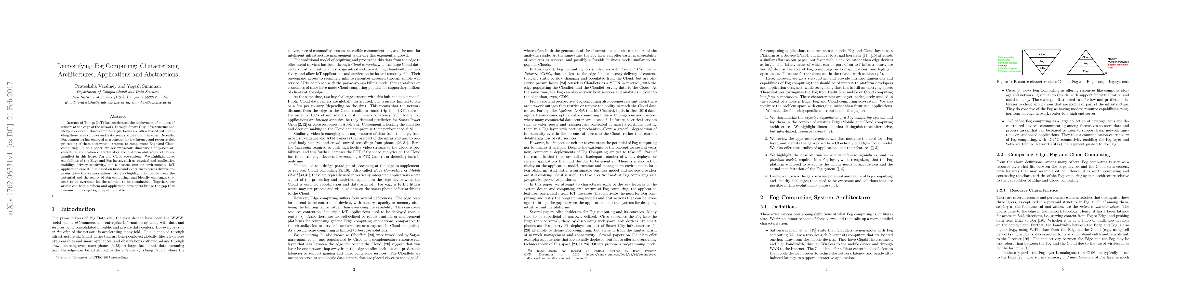 The paper categorizes and characterizes Fog computing architectures, applications, and abstractions, highlighting novel capabilities and challenges in this emerging computing paradigm.