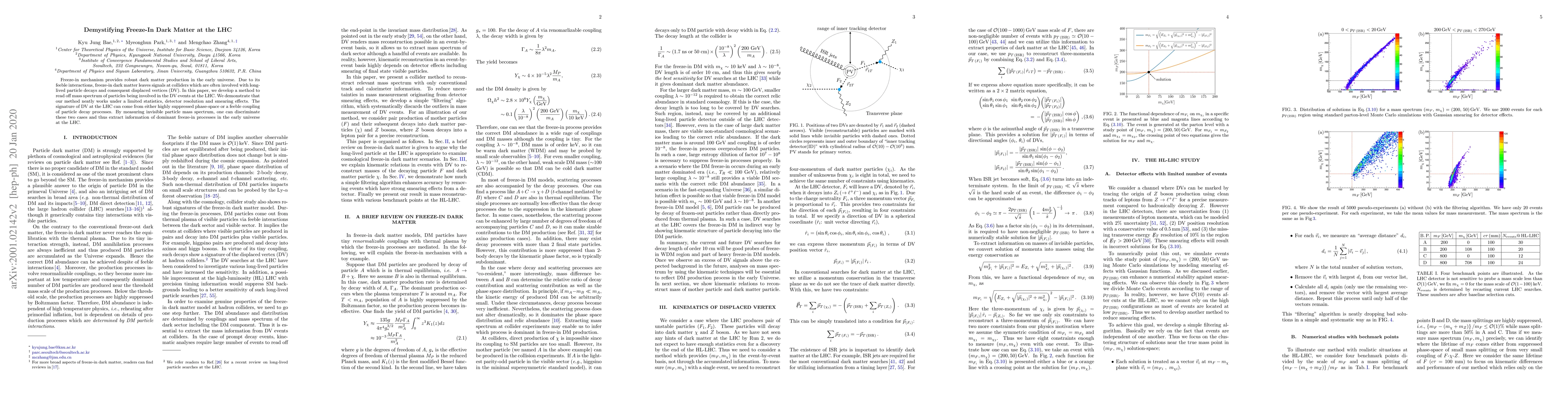 This paper introduces a method to determine the mass spectrum of particles causing displaced vertices (DV) at the LHC, crucial for understanding freeze-in dark matter production. The technique effectively handles limited statistics, detector resolution, and smearing effects, allowing differentiation between suppressed phase-space and feeble coupling decay processes, thereby revealing dominant early universe freeze-in processes at the LHC.