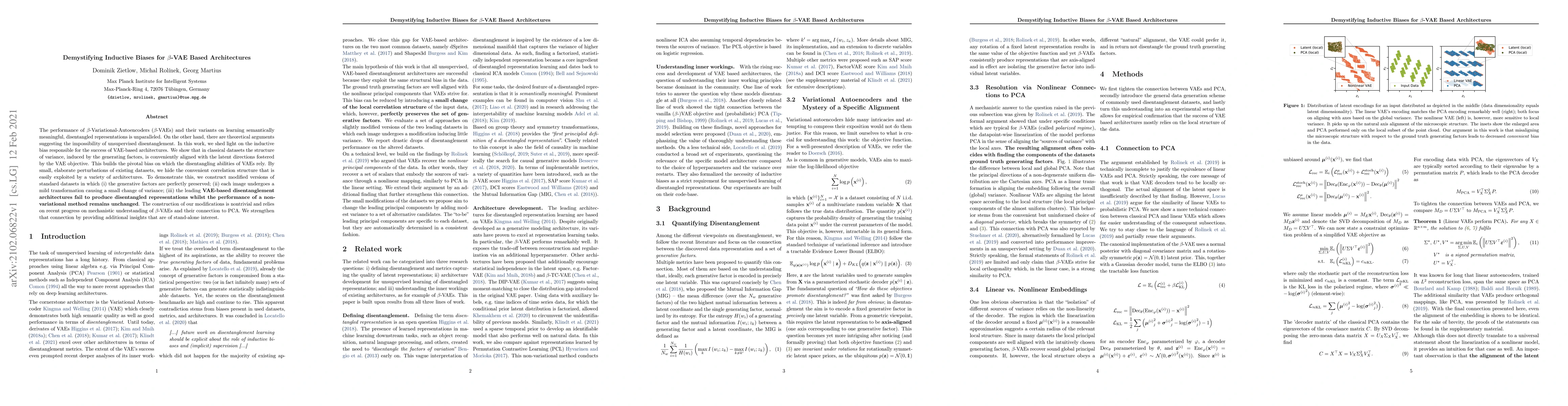 This paper investigates the inductive biases enabling $\beta$-VAEs to learn disentangled representations, revealing that the alignment of variance structure with latent directions is crucial. It demonstrates that minor dataset modifications, which disrupt this alignment, can cause VAE-based architectures to fail, while non-variational methods remain unaffected.