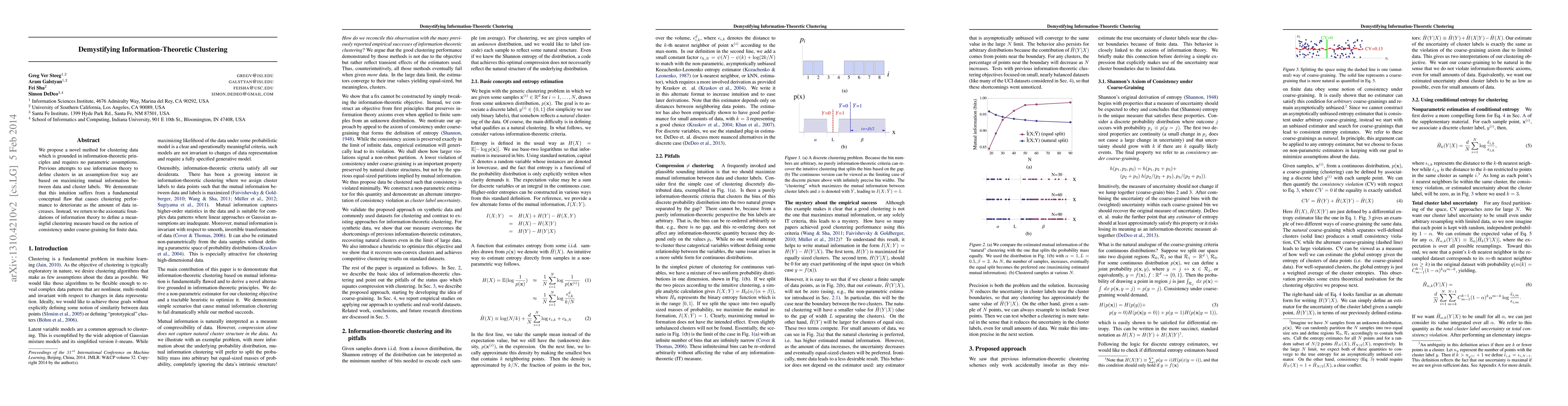 This paper introduces a new clustering method based on information-theoretic principles, avoiding parametric assumptions. It critiques existing methods that maximize mutual information and proposes a new clustering measure grounded in consistency under coarse-graining, addressing performance issues with larger datasets.