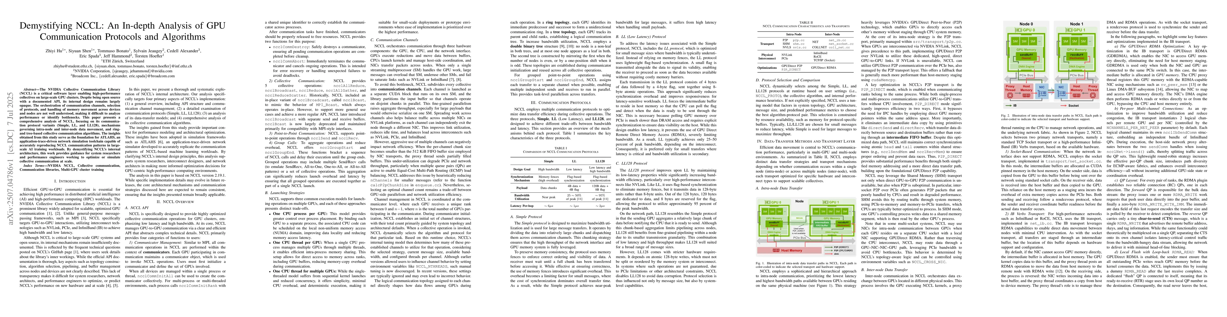 The paper presents a comprehensive analysis of NCCL, focusing on its communication protocol variants, data movement mechanisms, and collective communication algorithms.
