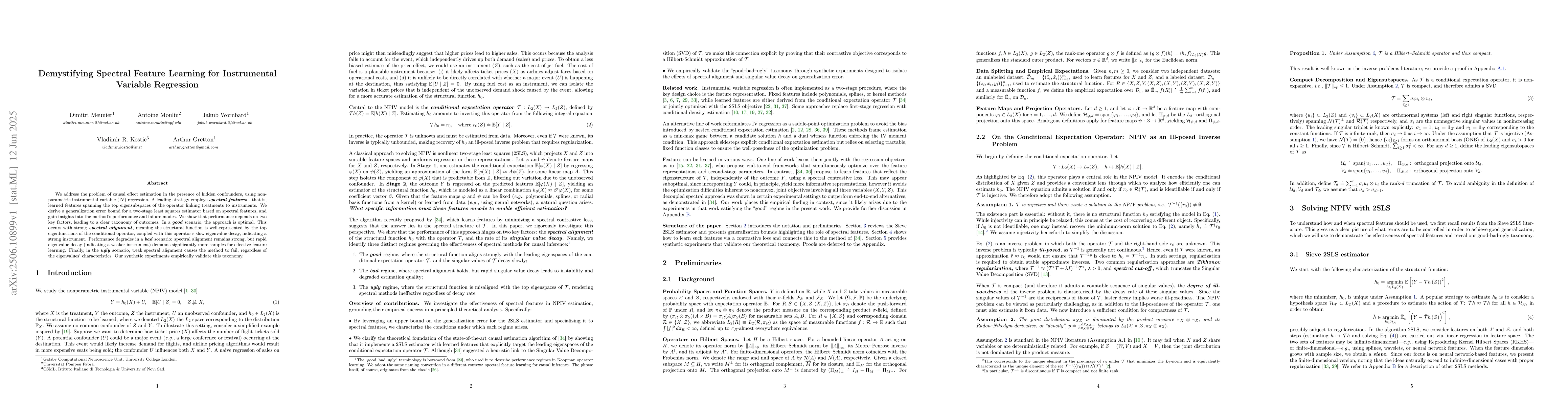 This paper studies how well a method called spectral feature learning works for estimating causal effects in the presence of hidden confounders. It finds that performance depends on two key factors: strong spectral alignment and instrument quality.