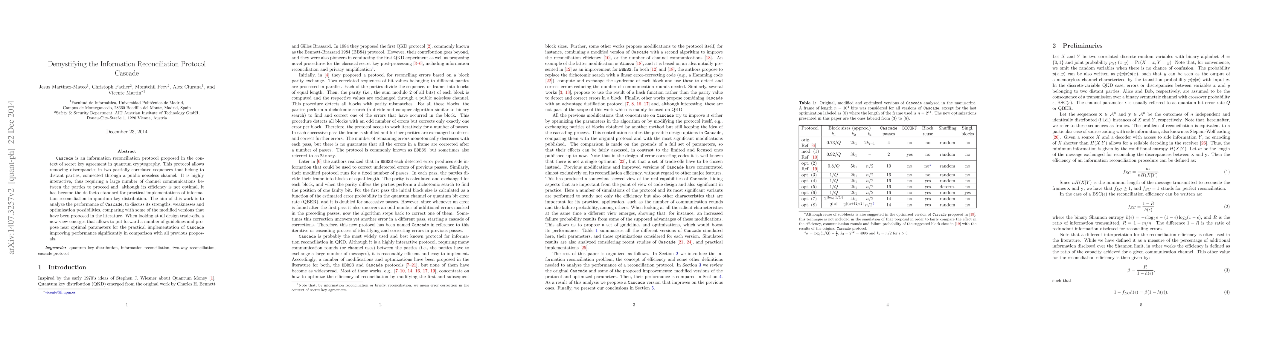 Cascade is an information reconciliation protocol proposed in the context of secret key agreement in quantum cryptography. This protocol allows removing discrepancies in two partially correlated sequences that belong to distant parties, connected through a public noiseless channel. It is highly interactive, thus requiring a large number of channel communications between the parties to proceed and, although its efficiency is not optimal, it has become the de-facto standard for practical implementations of information reconciliation in quantum key distribution. The aim of this work is to analyze the performance of Cascade, to discuss its strengths, weaknesses and optimization possibilities, comparing with some of the modified versions that have been proposed in the literature. When looking at all design trade-offs, a new view emerges that allows to put forward a number of guidelines and propose near optimal parameters for the practical implementation of Cascade improving performance significantly in comparison with all previous proposals.