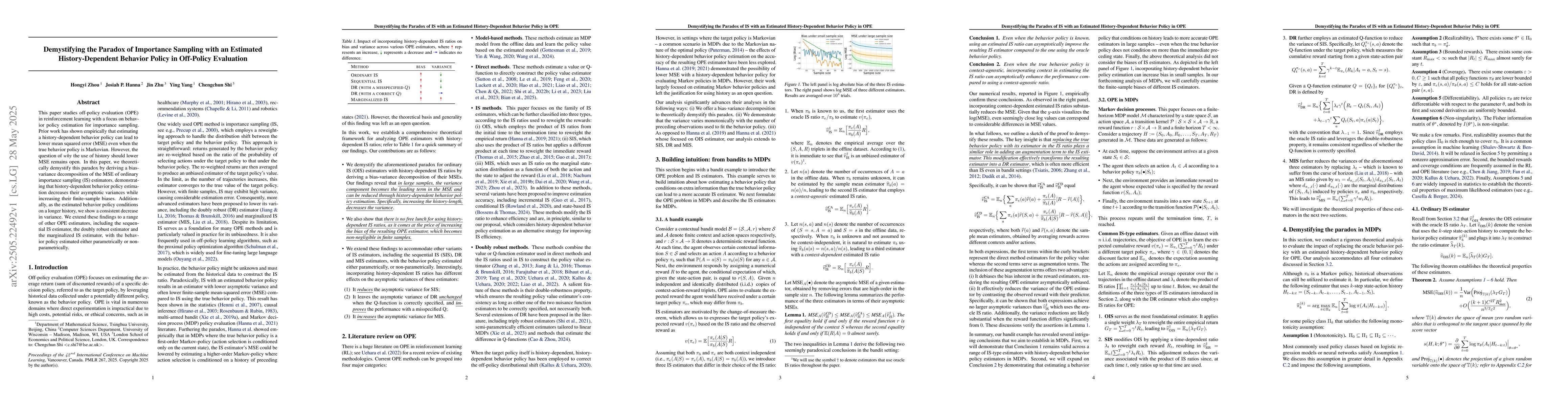 This study demystifies the paradox of lower MSE with history-dependent behavior policy estimation in OPE, providing theoretical insight beneficial for improving reinforcement learning algorithms.