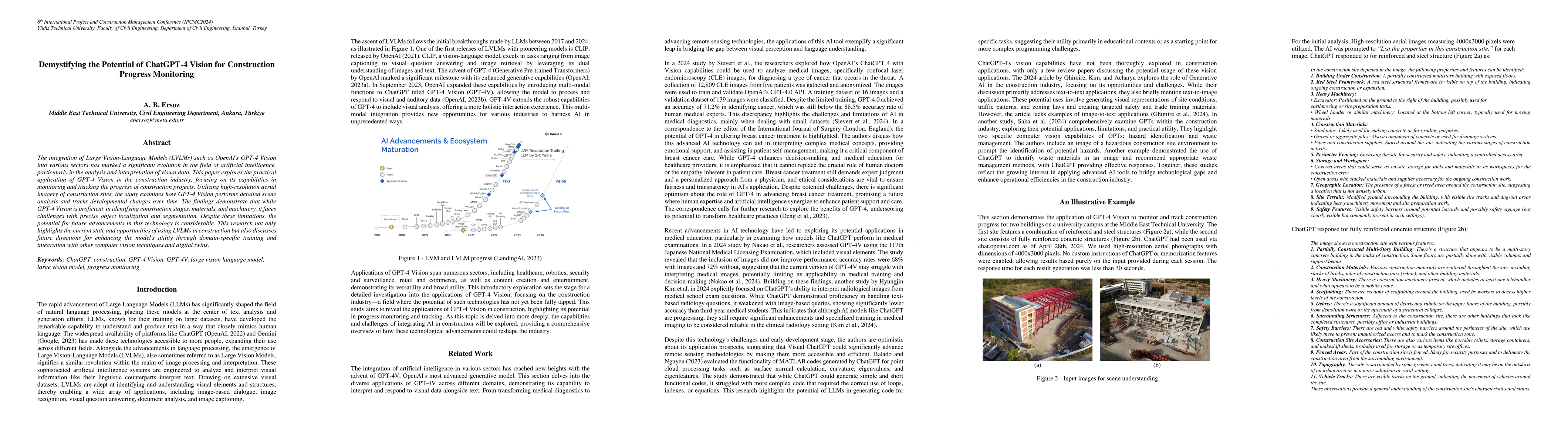This paper investigates the application of GPT-4 Vision in construction progress monitoring using high-resolution aerial imagery. While GPT-4 Vision excels at identifying construction elements, it encounters difficulties with precise localization, suggesting room for future enhancements.