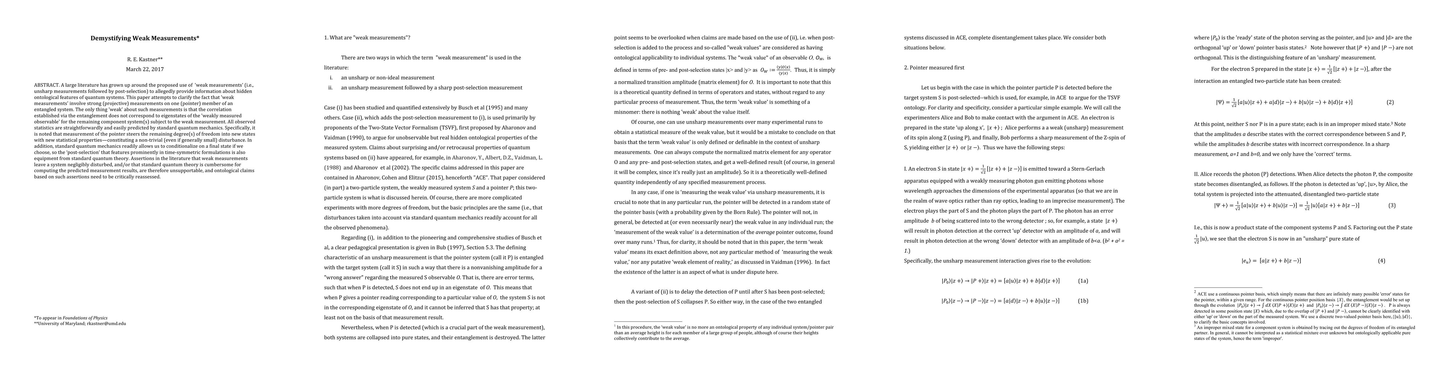 This paper clarifies that 'weak measurements' involve strong projective measurements on entangled systems, with the 'weakness' arising from non-eigenstate correlations. It argues that all observed statistics from weak measurements are predictable by standard quantum mechanics, refuting claims of negligible disturbance or computational complexity.