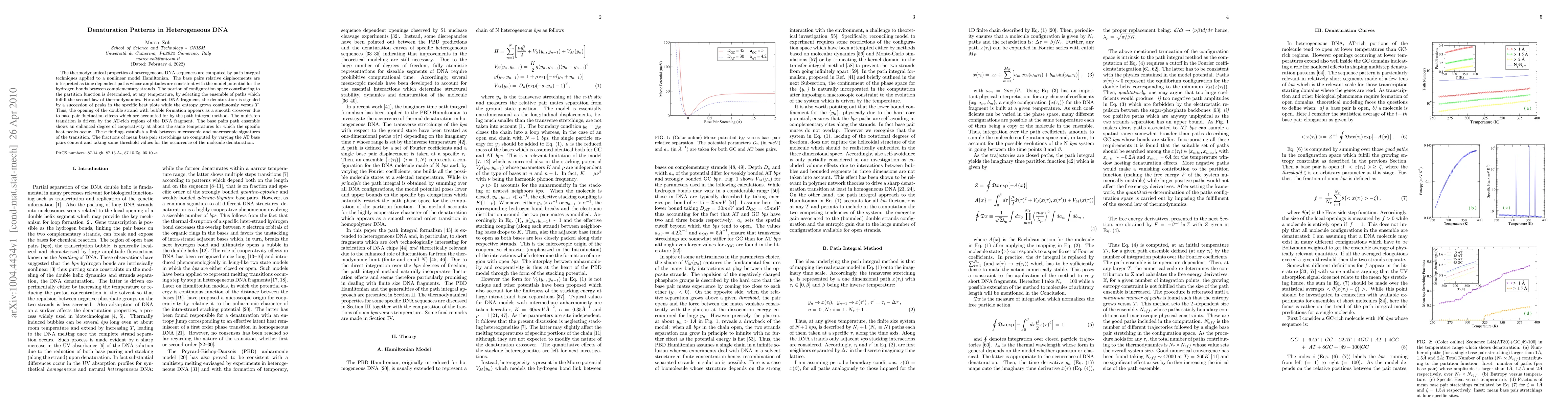This paper uses path integral techniques to model the thermodynamical properties of heterogeneous DNA sequences, revealing a smooth crossover in denaturation driven by AT-rich regions. The study finds a correlation between specific heat peaks and cooperative base pair fluctuations, linking microscopic base pair behaviors to macroscopic denaturation signatures.