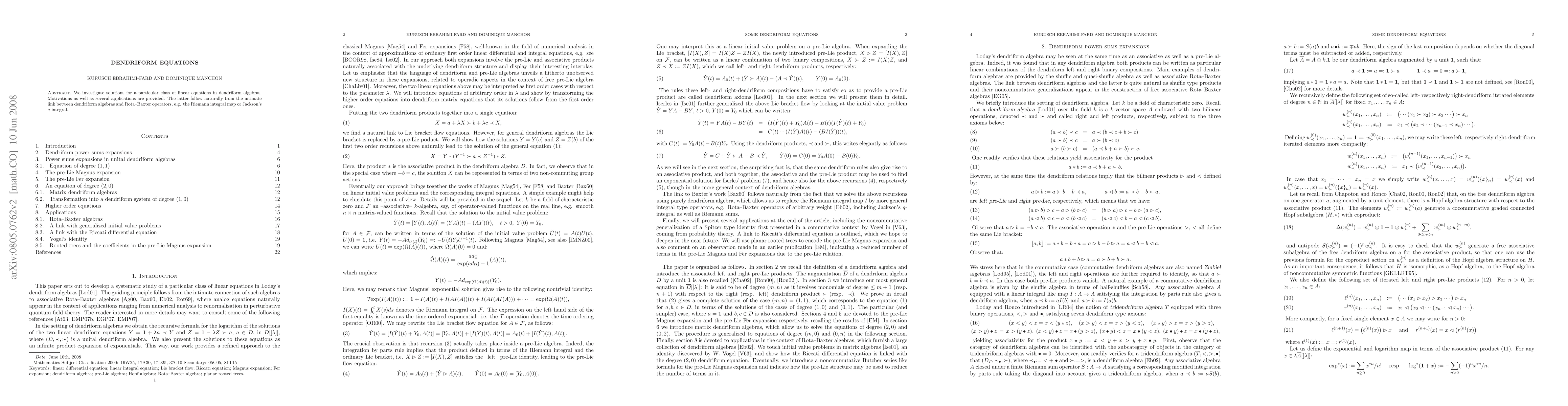 We investigate solutions for a particular class of linear equations in dendriform algebras. Motivations as well as several applications are provided. The latter follow naturally from the intimate link between dendriform algebras and Rota-Baxter operators, e.g. the Riemann integral or Jackson's q-integral.