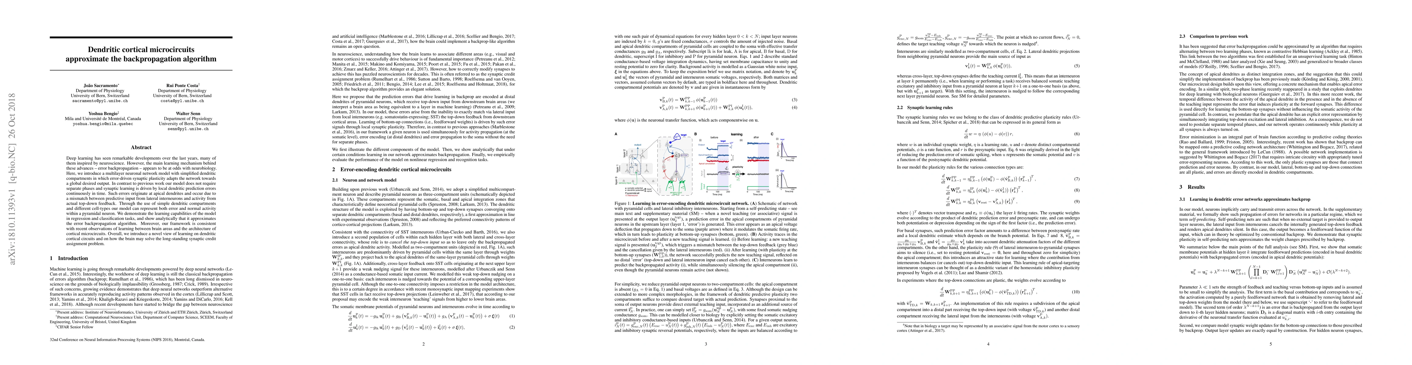 This paper proposes a novel multilayer neuronal network model that approximates the backpropagation algorithm using simplified dendritic compartments, demonstrating continuous synaptic learning driven by local dendritic prediction errors. The model aligns with neurobiological observations and shows effective learning in regression and classification tasks.
