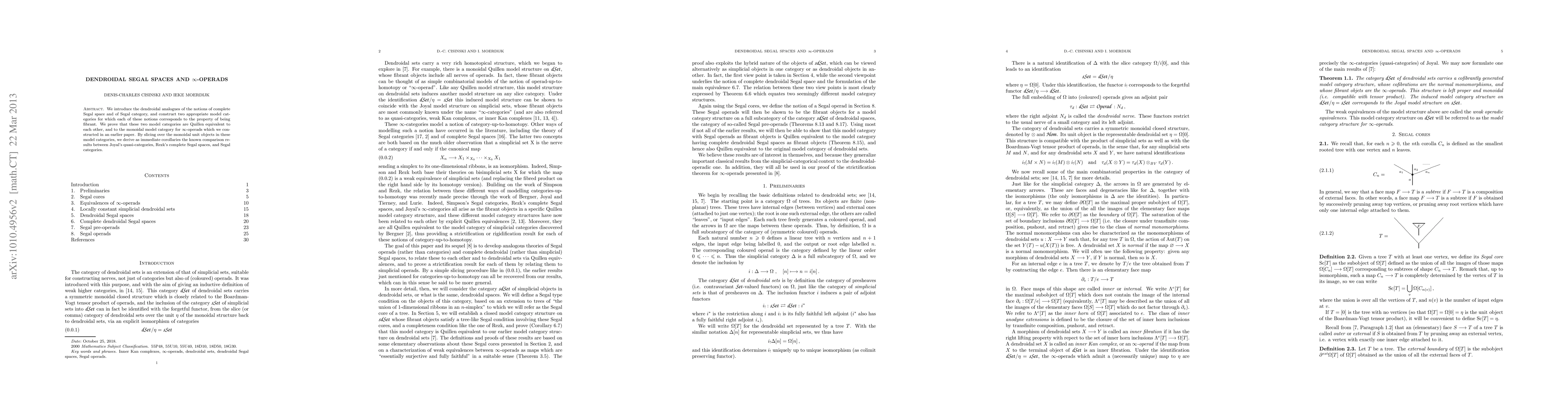 The introduction of dendroidal Segal spaces and the establishment of their model categories with Quillen equivalences to infinity-operads.