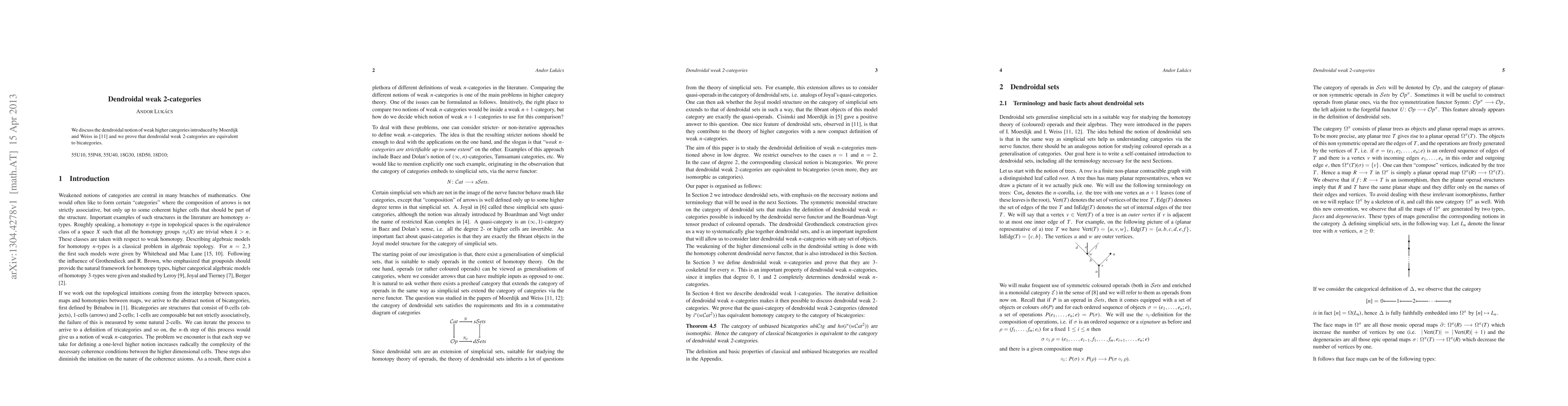 Summary: This paper explores dendroidal weak higher categories and demonstrates that dendroidal weak 2-categories are equivalent to bicategories, providing a significant link between these two categorical structures.