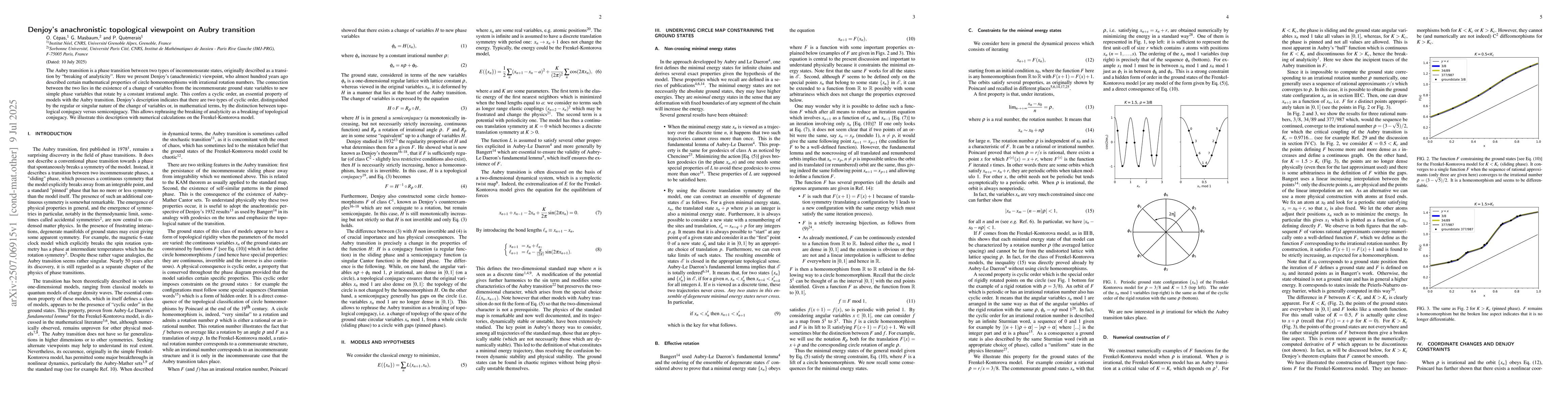 The Aubry transition is a phase transition between two types of incommensurate states, originally described as a transition by ``breaking of analyticity''. Here we present Denjoy's (anachronistic) viewpoint, who almost hundred years ago described certain mathematical properties of circle homeomorphisms with irrational rotation numbers. The connection between the two lies in the existence of a change of variables from the incommensurate ground state variables to new simple phase variables that rotate by a constant irrational angle. This confers a cyclic order, an essential property of models with the Aubry transition. Denjoy's description indicates that there are two types of cyclic order, distinguished by the regular or singular nature of the change of variables or, in mathematical terms, by the distinction between topological conjugacy versus semiconjugacy. This allows rephrasing the breaking of analyticity as a breaking of topological conjugacy. We illustrate this description with numerical calculations on the Frenkel-Kontorova model.