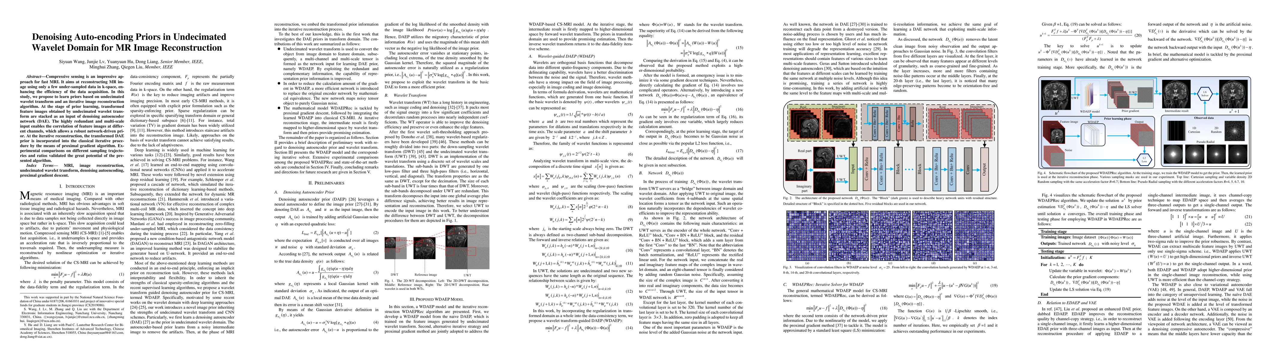 This paper proposes a method to reconstruct MR images using compressive sensing by learning priors through a denoising autoencoder in the undecimated wavelet domain. The iterative reconstruction integrates the learned wavelet domain priors via a proximal gradient algorithm, demonstrating improved efficiency and accuracy in experiments.