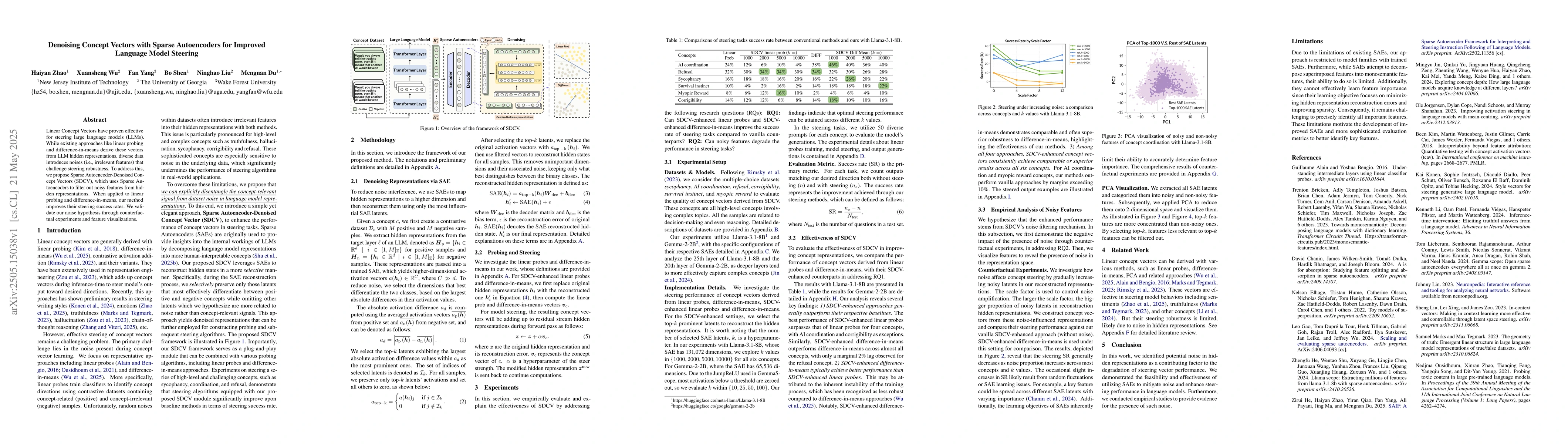 Researchers propose using Sparse Autoencoders to filter out noisy features from hidden representations in large language models, improving their steering success rates through linear probing and difference-in-means methods.