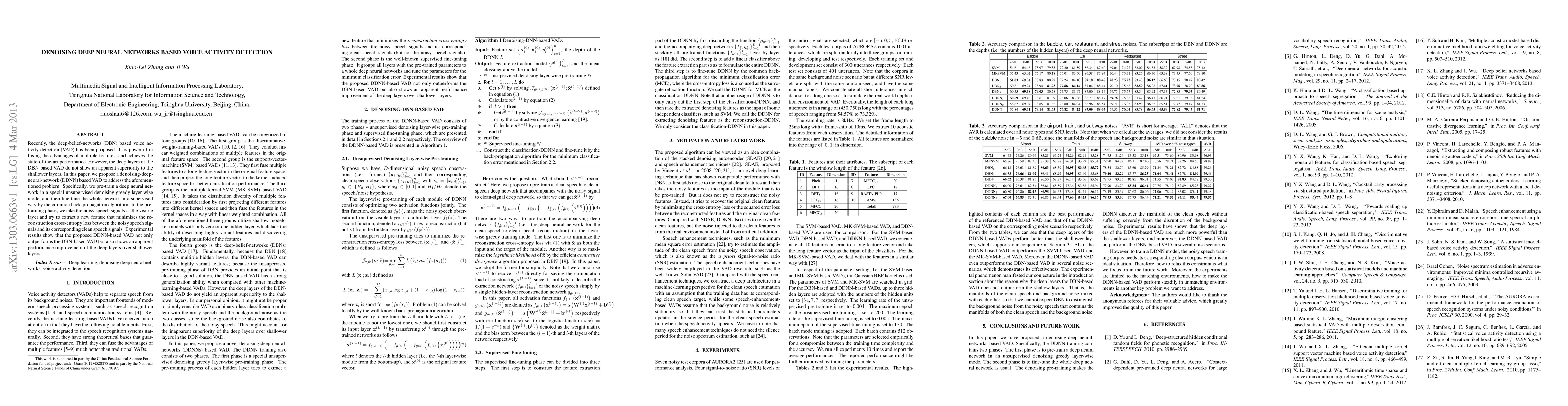 This paper proposes a denoising-deep-neural-network (DDNN) based voice activity detection (VAD) to improve upon deep-belief-networks (DBN) by enhancing deep layers' performance. The DDNN is pre-trained in an unsupervised denoising mode and fine-tuned via supervised back-propagation, achieving better results than DBN-based VAD.