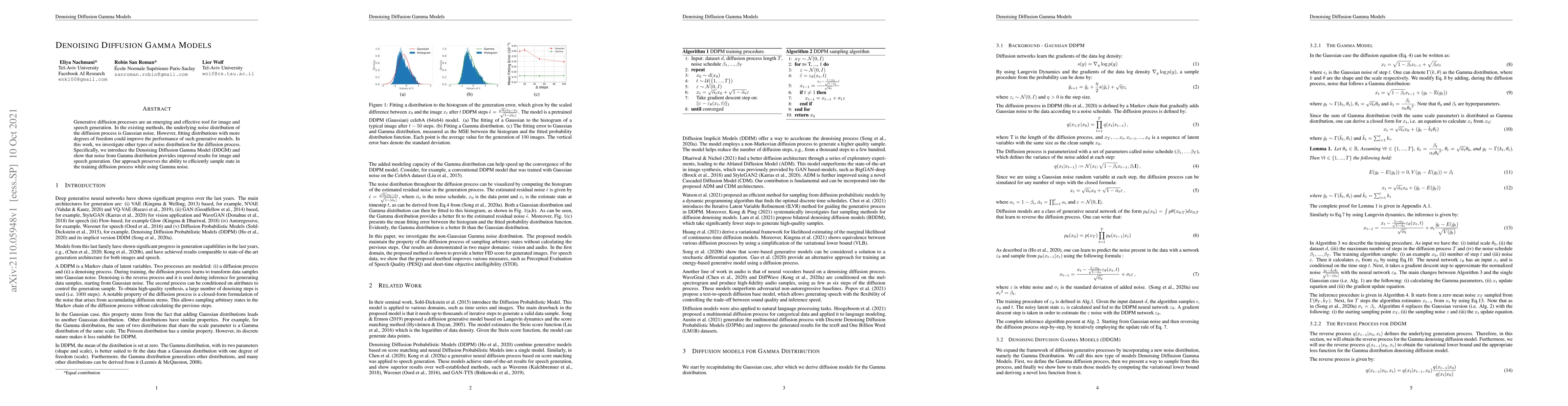 Researchers introduce Denoising Diffusion Gamma Models that use noise from a Gamma distribution to improve image and speech generation performance, outperforming existing methods with more degrees of freedom.