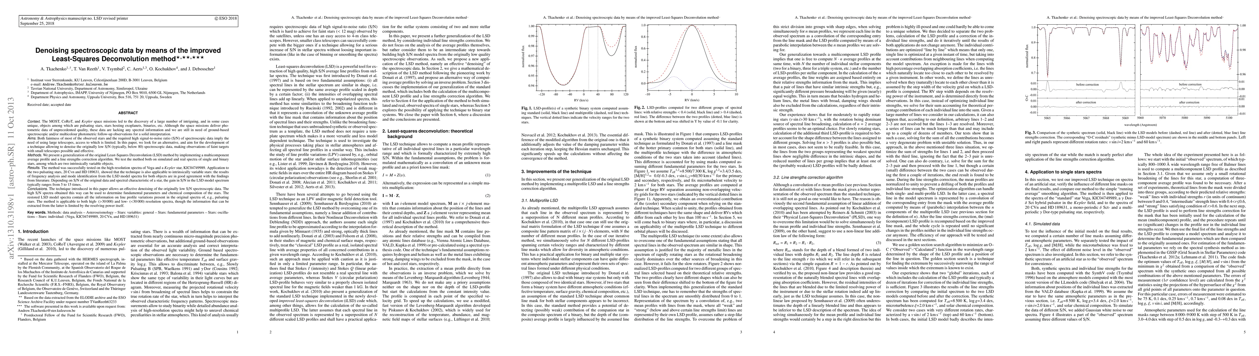 The MOST, CoRoT, and Kepler space missions led to the discovery of a large number of intriguing, and in some cases unique, objects among which are pulsating stars, stars hosting exoplanets, binaries, etc. Although the space missions deliver photometric data of unprecedented quality, these data are lacking any spectral information and we are still in need of ground-based spectroscopic and/or multicolour photometric follow-up observations for a solid interpretation. Both faintness of most of the observed stars and the required high S/N of spectroscopic data imply the need of using large telescopes, access to which is limited. In this paper, we look for an alternative, and aim for the development of a technique allowing to denoise the originally low S/N spectroscopic data, making observations of faint targets with small telescopes possible and effective. We present a generalization of the original Least-Squares Deconvolution (LSD) method by implementing a multicomponent average profile and a line strengths correction algorithm. The method was successfully tested on the high resolution spectra of Vega and a Kepler star, KIC04749989. Application to the two pulsating stars, 20 Cvn and HD189631, showed that the technique is also applicable to intrinsically variable stars: the results of frequency analysis and mode identification from the LSD model spectra for both objects are in good agreement with the findings from literature. Depending on S/N of the original data and spectral characteristics of a star, the gain in S/N in the LSD model spectrum typically ranges from 5 to 15 times. The restored LSD model spectra contain all the information on line profile variations present in the original spectra. The method is applicable to both high- (>30 000) and low- (<30 000) resolution spectra, though the information that can be extracted from the latter is limited by the resolving power itself.