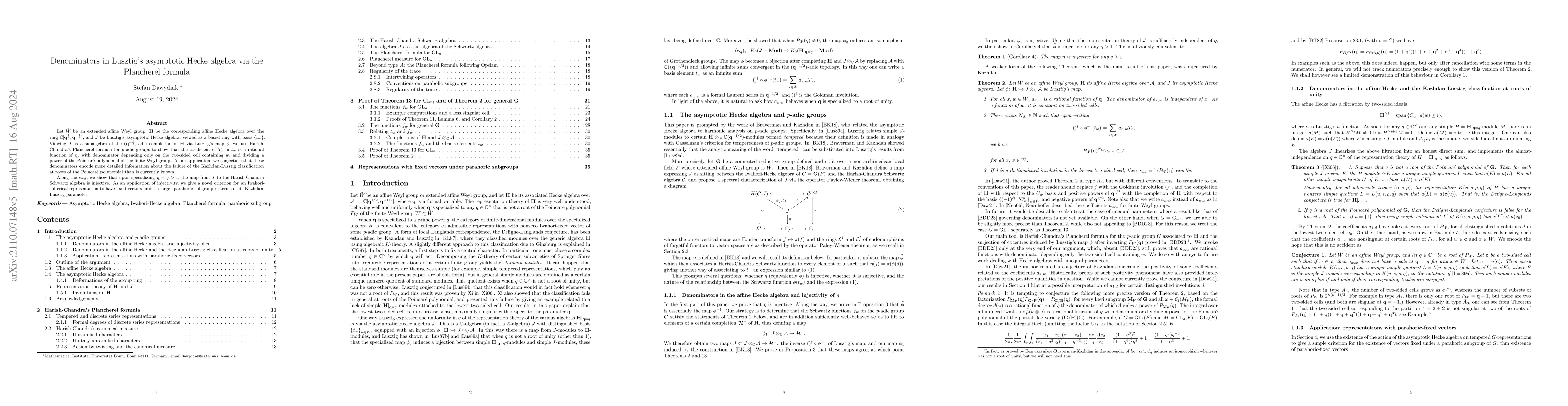 Let $\tilde{W}$ be an extended affine Weyl group, $\mathbf{H}$ be the corresponding affine Hecke algebra over the ring $\mathbb{C}[\mathbf{q}^\frac{1}{2}, \mathbf{q}^{-\frac{1}{2}}]$, and $J$ be Lusztig's asymptotic Hecke algebra, viewed as a based ring with basis $\{t_w\}$. Viewing $J$ as a subalgebra of the $(\mathbf{q}^{-\frac{1}{2}})$-adic completion of $\mathbf{H}$ via Lusztig's map $\phi$, we use Harish-Chandra's Plancherel formula for $p$-adic groups to show that the coefficient of $T_x$ in $t_w$ is a rational function of $\mathbf{q}$, depending only on the two-sided cell containing $w$, and with no poles outside of a finite set of roots of unity depending only on $\tilde{W}$. For $w$ in the lowest two-sided cell, and for all cells in types $\tilde{A}_n$, $\tilde{C}_2$, and $\tilde{G}_2$, we show that the denominators all divide a power of the Poincar\'{e} polynomial of the finite Weyl group. As an application, we conjecture that these denominators encode more detailed information about the failure of the Kazhdan-Lusztig classification at roots of the Poincar\'{e} polynomial than is currently known. Along the way, we show that upon specializing $\mathbf{q}=q>1$, the map from $J$ to the Harish-Chandra Schwartz algebra is injective. As an application of injectivity, we give a novel criterion for an Iwahori-spherical representation to have fixed vectors under a larger parahoric subgroup in terms of its Kazhdan-Lusztig parameter.