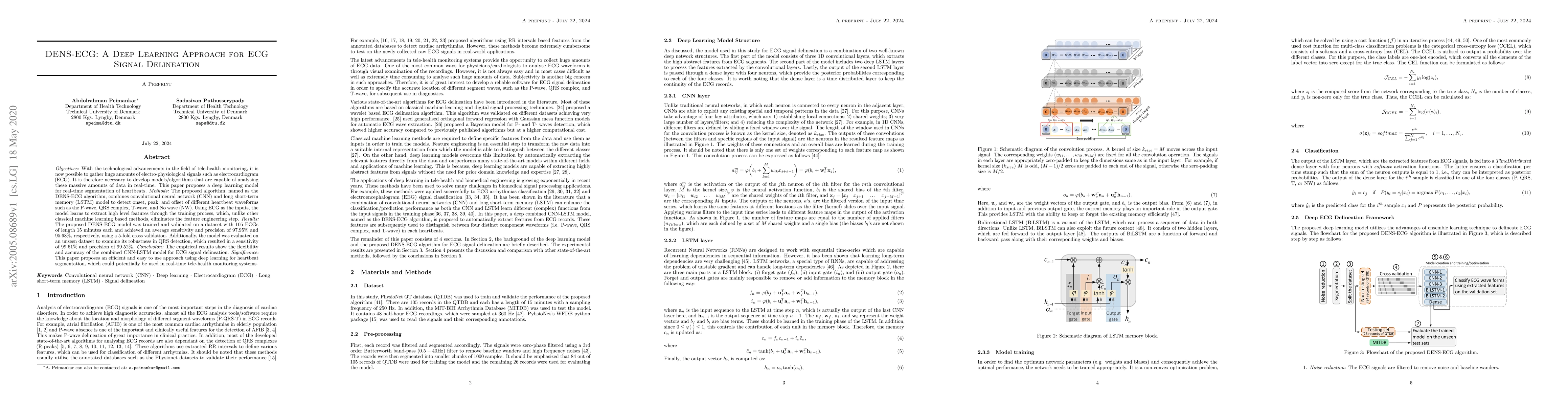 This research introduces a deep learning model called DENS-ECG, which combines convolutional neural networks (CNN) and long short-term memory (LSTM) to segment ECG signals in real-time. The model achieved high sensitivity and precision in detecting various ECG waveforms, demonstrating its potential for real-time tele-health monitoring applications.