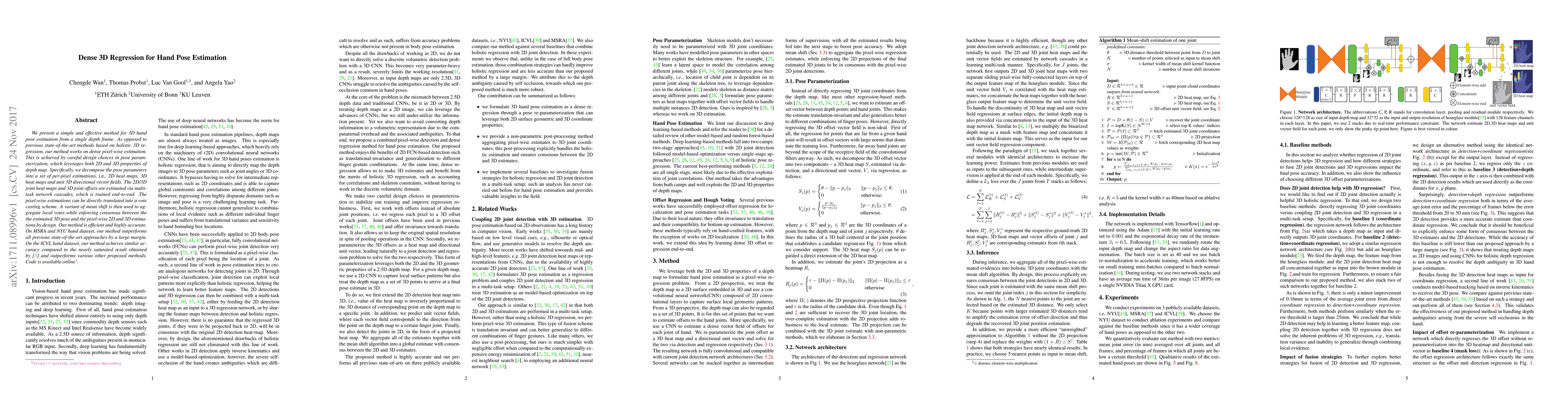 This paper introduces a dense 3D regression method for accurate hand pose estimation from a single depth frame, utilizing pixel-wise estimations through 2D and 3D heat maps and directional vectors. The method outperforms previous state-of-the-art techniques on multiple datasets.