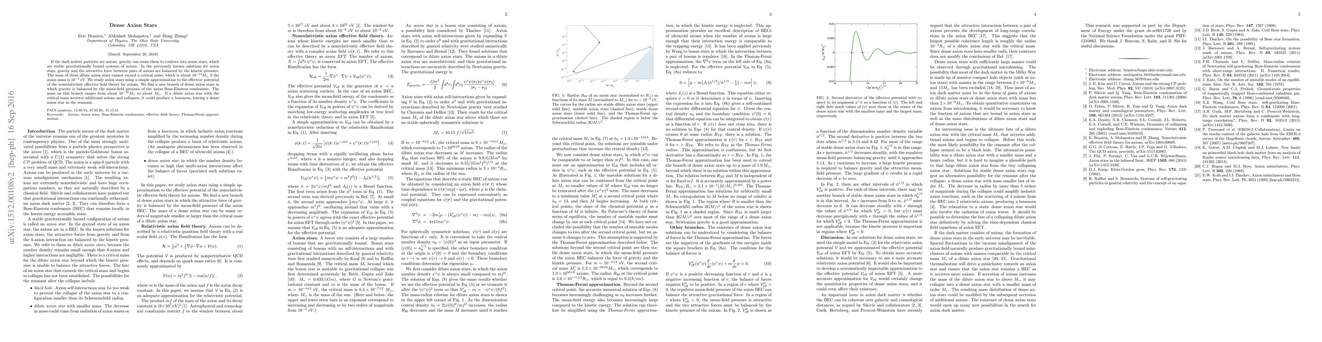 This paper explores dense axion stars, stable gravitationally bound systems of axions, finding a new branch where gravity is balanced by the mean-field pressure of the axion Bose-Einstein condensate, with masses ranging from $10^{-20} M_\odot$ to $M_\odot$. It suggests that accreting axions could lead to a bosenova, leaving behind a dense axion star.