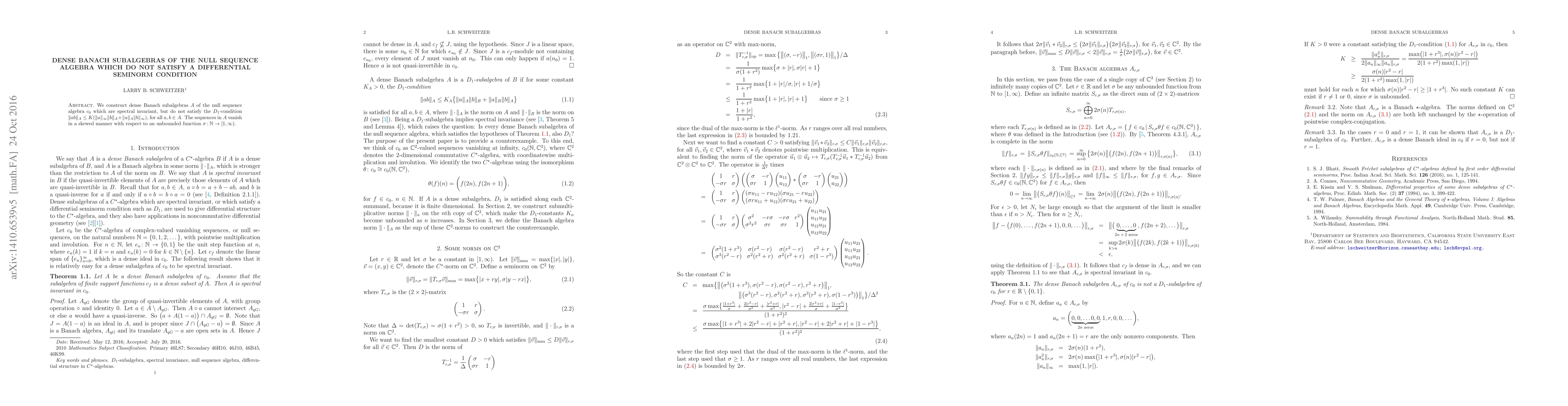 Researchers created dense Banach subalgebras of the null sequence algebra that don't satisfy a specific differential seminorm condition, showing they can still exhibit spectral invariance with unique vanishing properties.