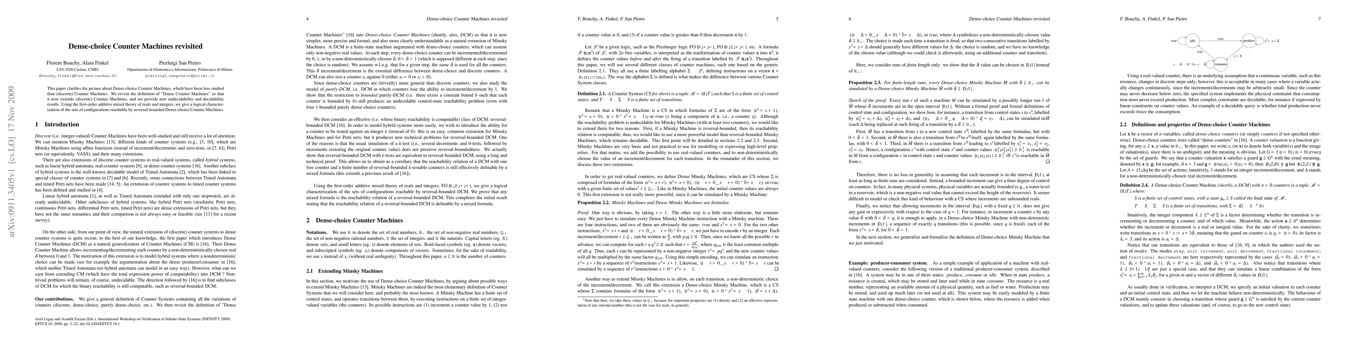 This paper revisits Dense-choice Counter Machines, clarifying their definition and providing new results on reachability and decidability using first-order additive mixed theory of reals and integers.