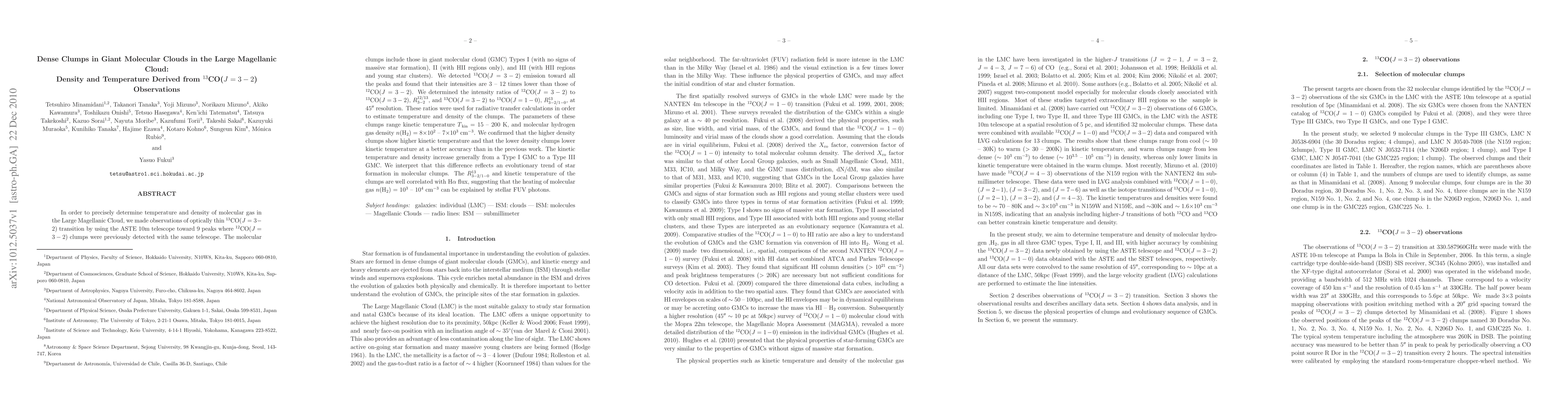 This study uses $^{13}$CO($J=3-2$) observations to determine the temperature and density of molecular gas in giant molecular clouds in the Large Magellanic Cloud, finding kinetic temperatures ranging from 15 to 200 K and densities from 8 x 10^2 to 7 x 10^3 cm$^{-3}$. The higher density clumps exhibit higher temperatures, indicating an evolutionary trend of star formation.
