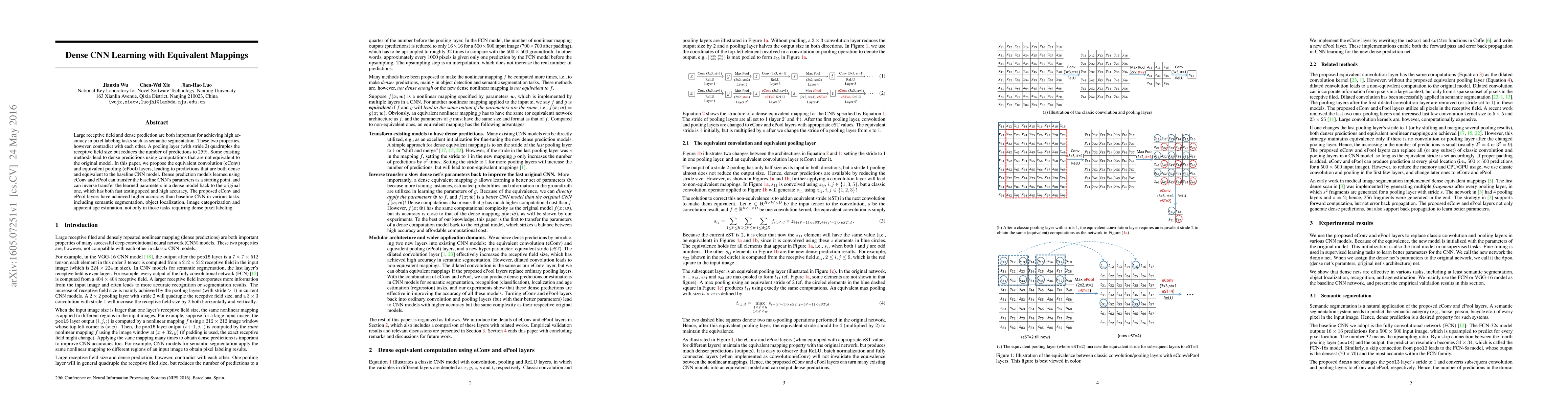This paper introduces equivalent convolution (eConv) and equivalent pooling (ePool) layers to achieve both large receptive fields and dense predictions in CNNs, enabling high accuracy in tasks like semantic segmentation. These layers allow dense prediction models to transfer parameters from the baseline CNN and vice versa, achieving fast testing speed and high accuracy.