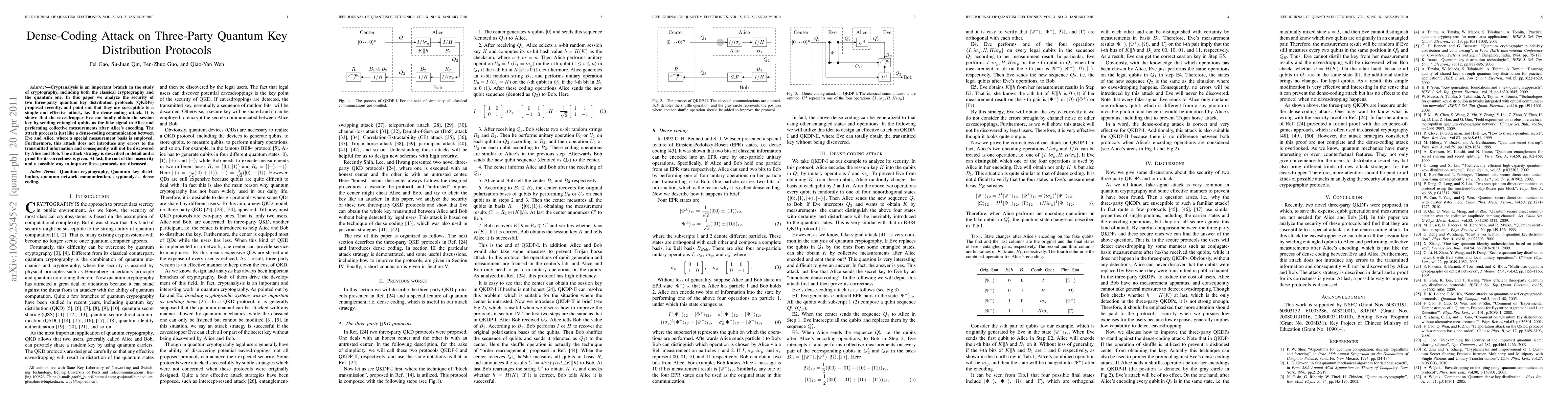 This paper analyzes the security of two three-party quantum key distribution protocols, revealing they are vulnerable to a dense-coding attack. The attack allows an eavesdropper to obtain the session key without introducing errors, thus remaining undetected. The paper details the attack strategy and proposes potential improvements to the protocols.