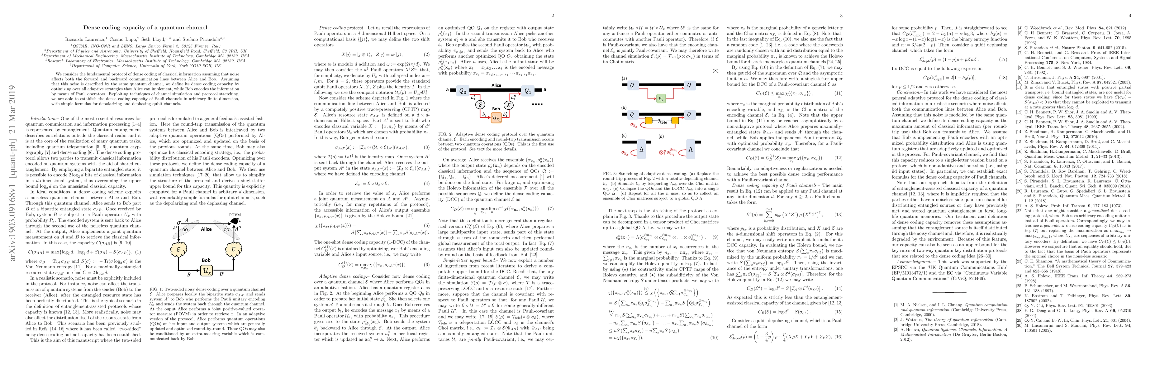 This paper investigates the dense coding capacity of quantum channels under noise affecting both communication lines, defining it as the optimization of Alice's adaptive strategies while Bob uses Pauli operators for encoding. The study establishes the dense coding capacity for Pauli channels in any finite dimension, providing simple formulas for depolarizing and dephasing qubit channels.