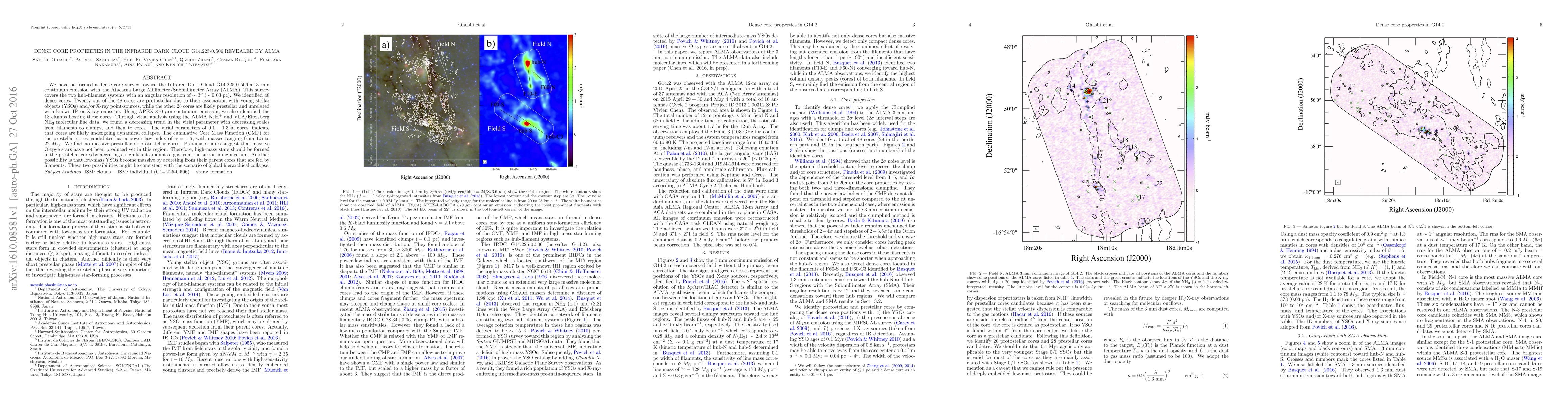 This study using ALMA identifies 48 dense cores in the Infrared Dark Cloud G14.225-0.506, of which 20 are protostellar and 28 are likely prestellar. The cores show signs of dynamical collapse with virial parameters indicating ongoing collapse, and suggest that high-mass stars may form through accretion from surrounding gas or filaments.