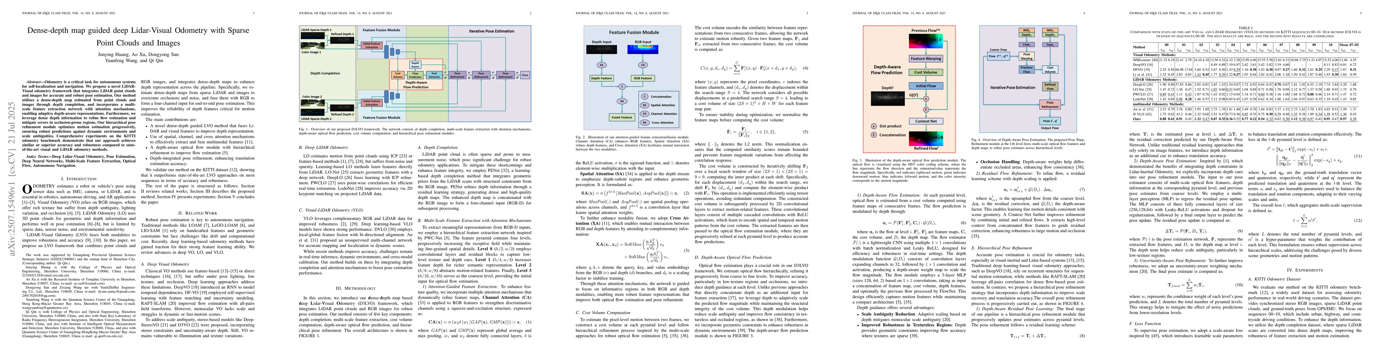 Odometry is a critical task for autonomous systems for self-localization and navigation. We propose a novel LiDAR-Visual odometry framework that integrates LiDAR point clouds and images for accurate and robust pose estimation. Our method utilizes a dense-depth map estimated from point clouds and images through depth completion, and incorporates a multi-scale feature extraction network with attention mechanisms, enabling adaptive depth-aware representations. Furthermore, we leverage dense depth information to refine flow estimation and mitigate errors in occlusion-prone regions. Our hierarchical pose refinement module optimizes motion estimation progressively, ensuring robust predictions against dynamic environments and scale ambiguities. Comprehensive experiments on the KITTI odometry benchmark demonstrate that our approach achieves similar or superior accuracy and robustness compared to state-of-the-art visual and LiDAR odometry methods.
