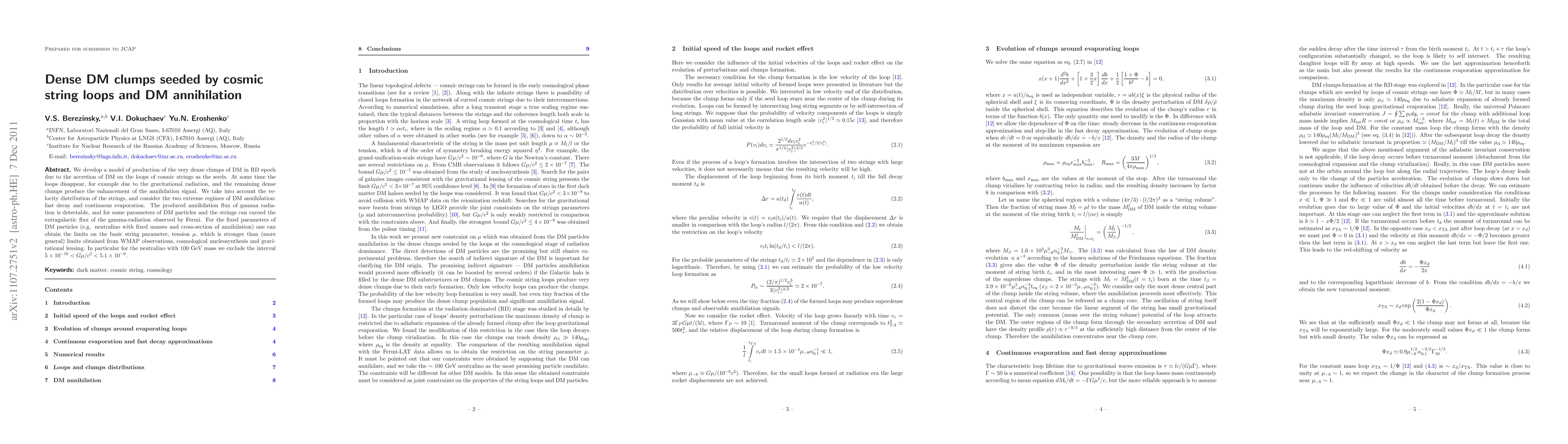 due to the accretion of DM on the loops of cosmic strings as the seeds. At some